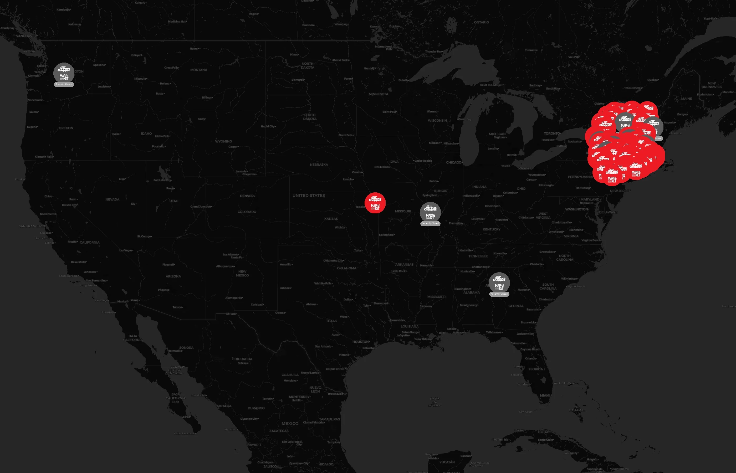 As of December 16, 2025, a total of 30 FastBreak locations exist in the United States of America. The highest concentration is found in Oregon, home to 28 locations (93.3% of the total).