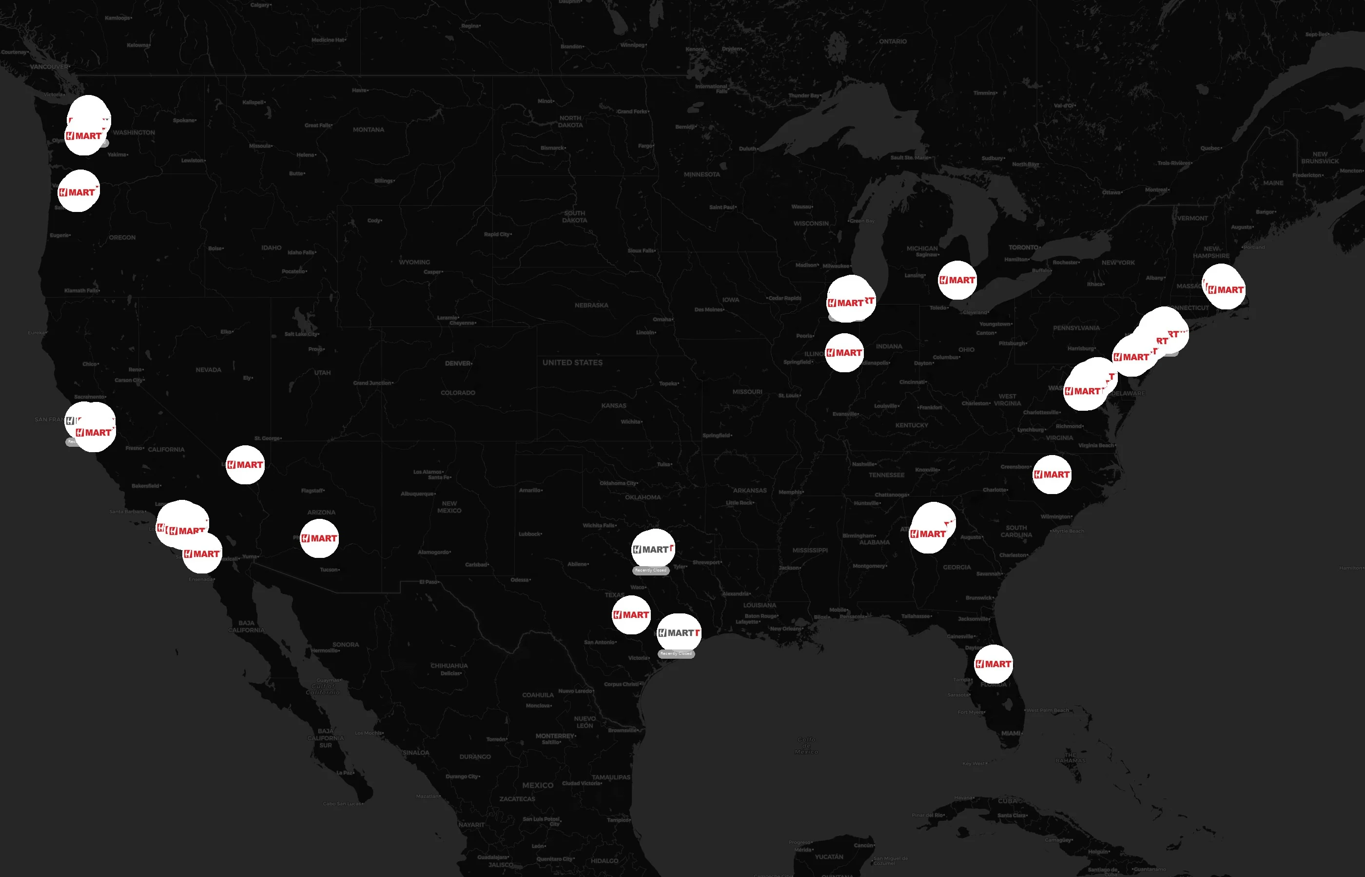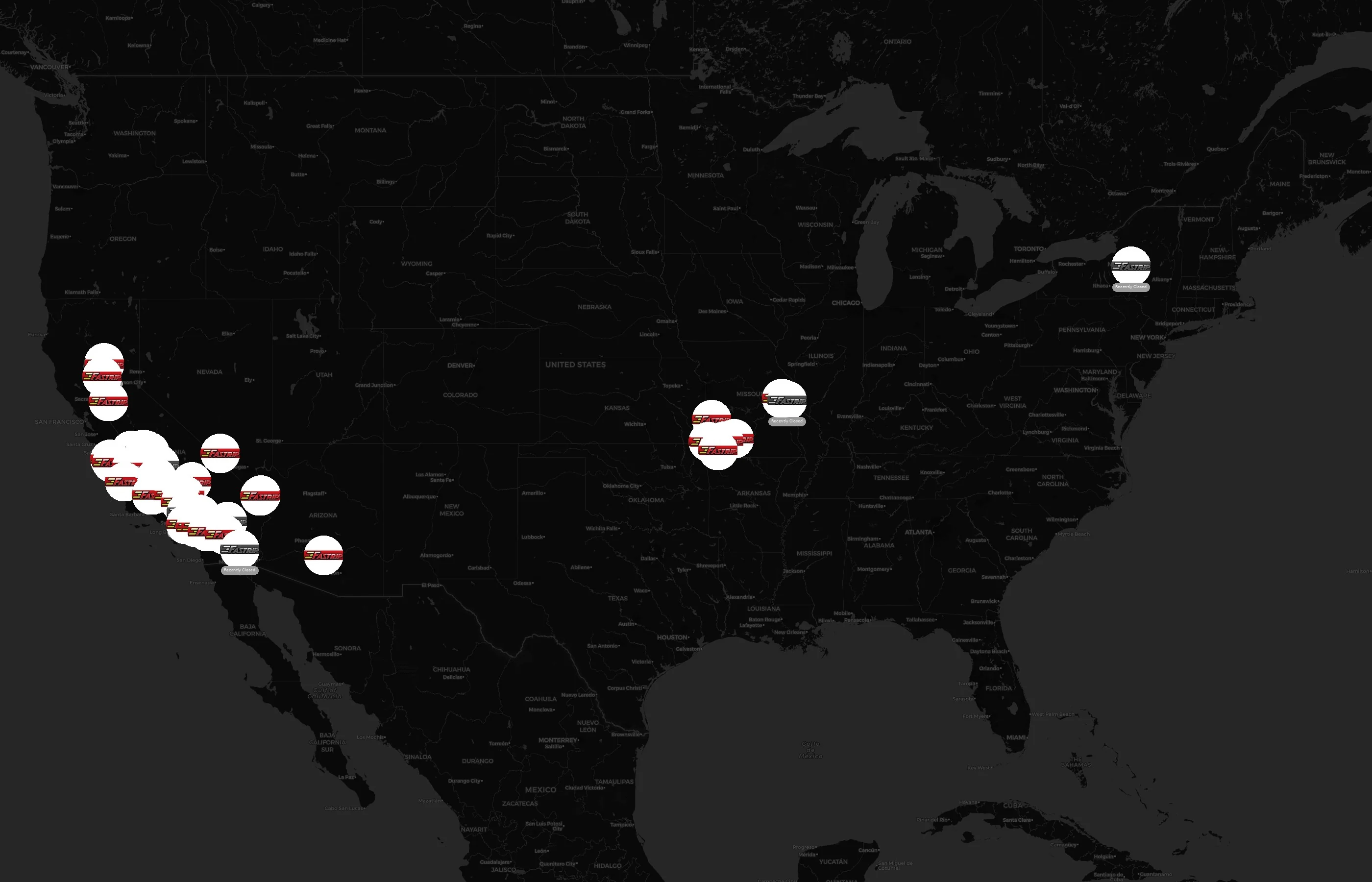 As of December 16, 2025, a total of 1,195 ExtraMile locations exist in the United States of America. The highest concentration is found in California, home to 911 locations (76.2% of the total).