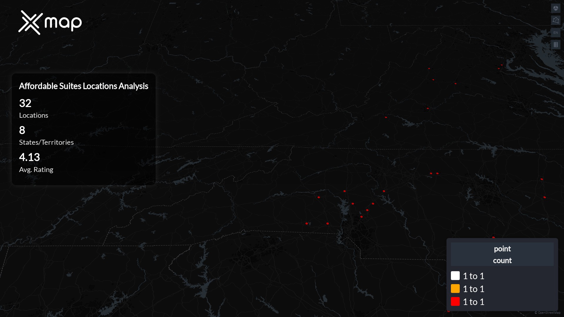 Affordable Suites has 32 locations across the United States of America. The key variables shows the most infleuntial aspects for Affordable Suites locations nationwide. This provides a closer look of how Affordable Suites is operating from different prespectives.