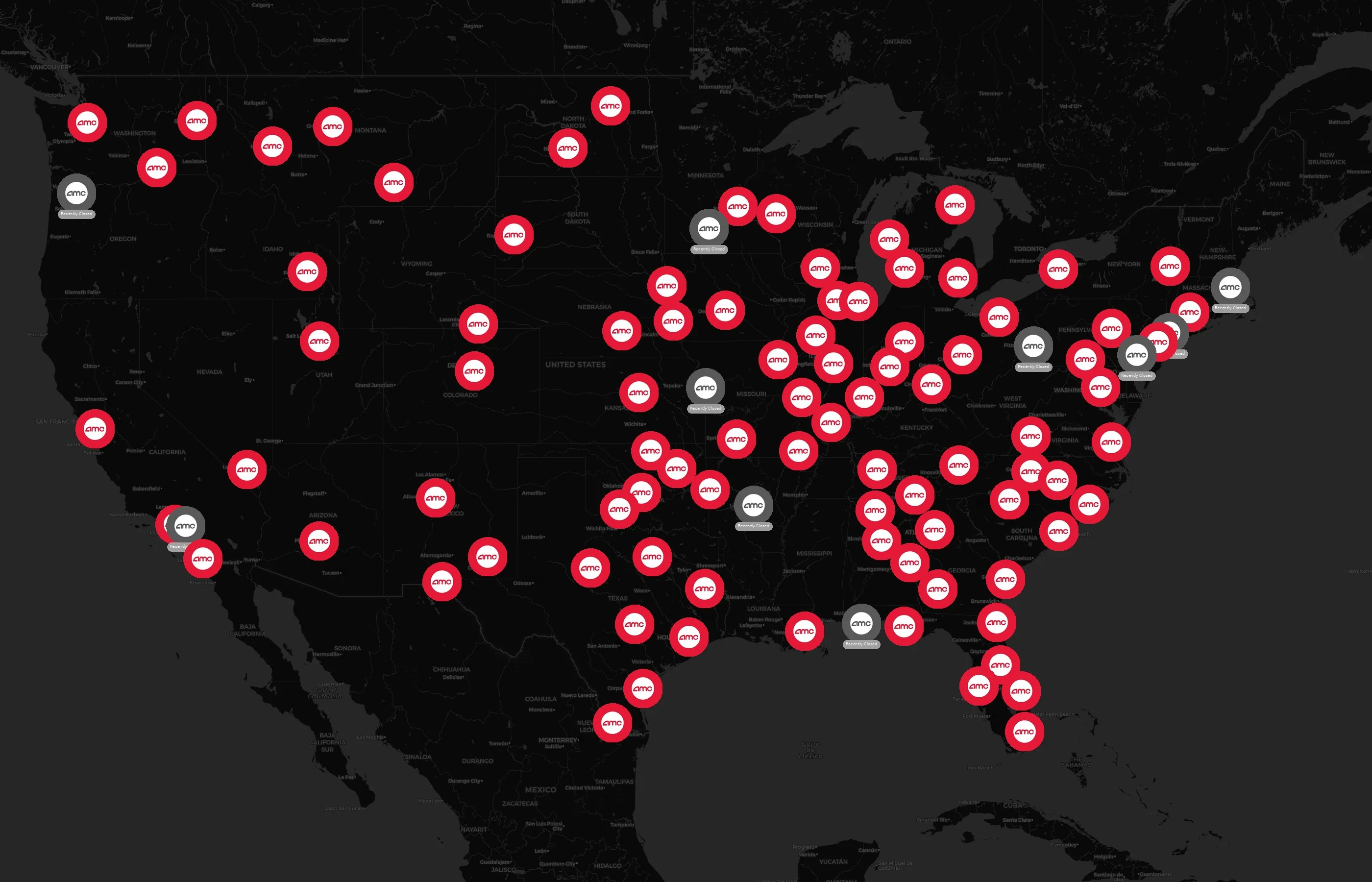 The complete dataset of AMC Theatres locations across the United States of America is available for download, including coordinates, traffic patterns, and operational status.