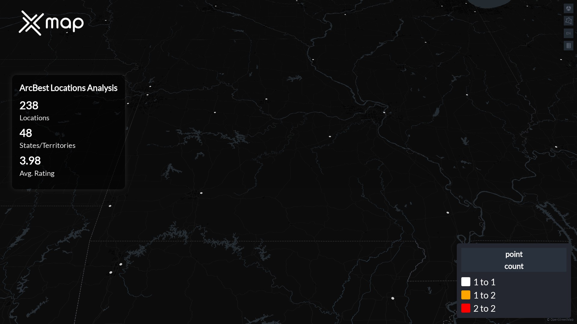 ArcBest has 238 locations across the United States of America. The key variables shows the most infleuntial aspects for ArcBest locations nationwide. This provides a closer look of how ArcBest is operating from different prespectives.