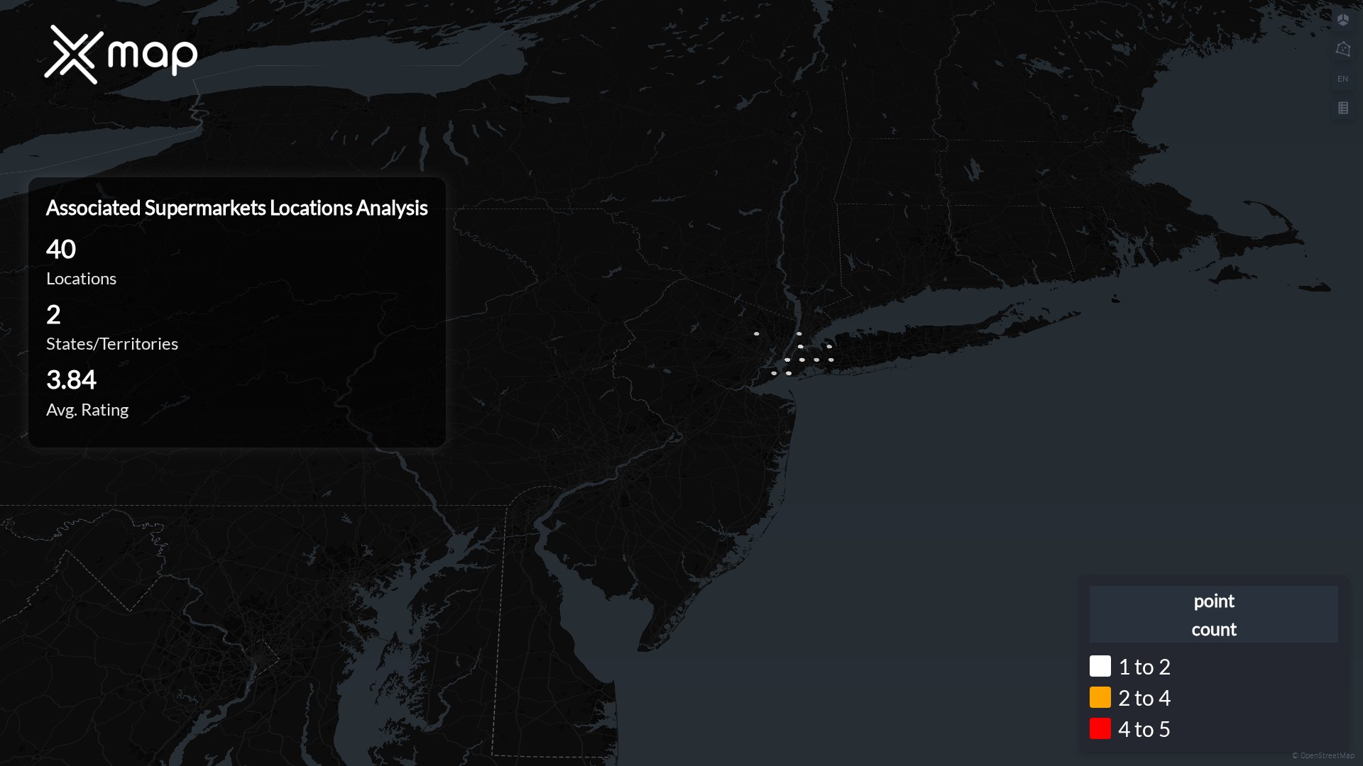 Associated Supermarkets POI data enables clear measurement of footprint and demand. Analysts can rank states and cities by location count, compare coverage on a per-capita basis, and use traffic scores and review volumes to spot high-performing markets and under-served pockets. The result is an objective view of saturation, growth opportunities, and performance outliers.