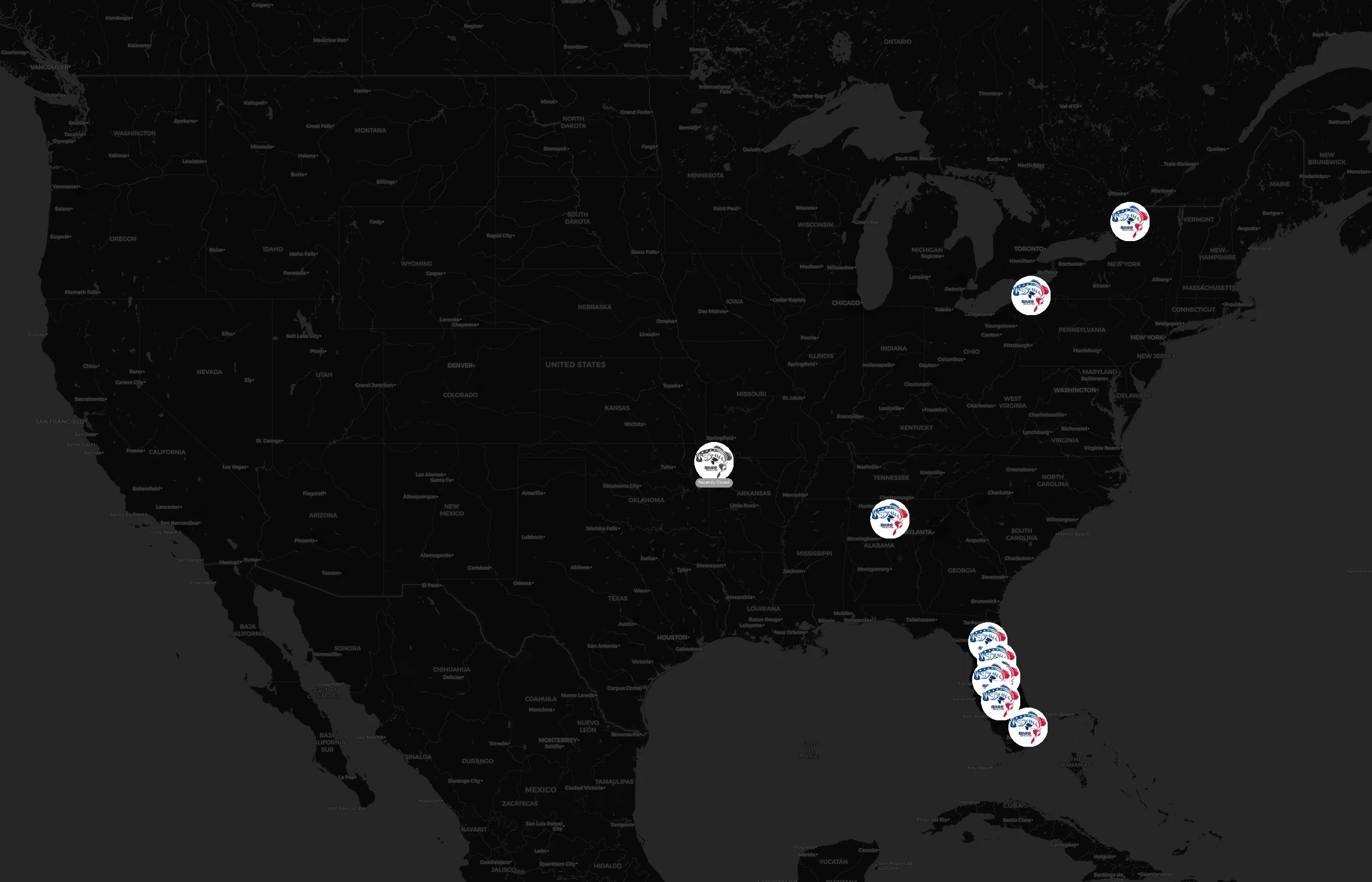 The complete dataset of Bass Online locations across the United States of America is available for download, including coordinates, traffic patterns, and operational status.