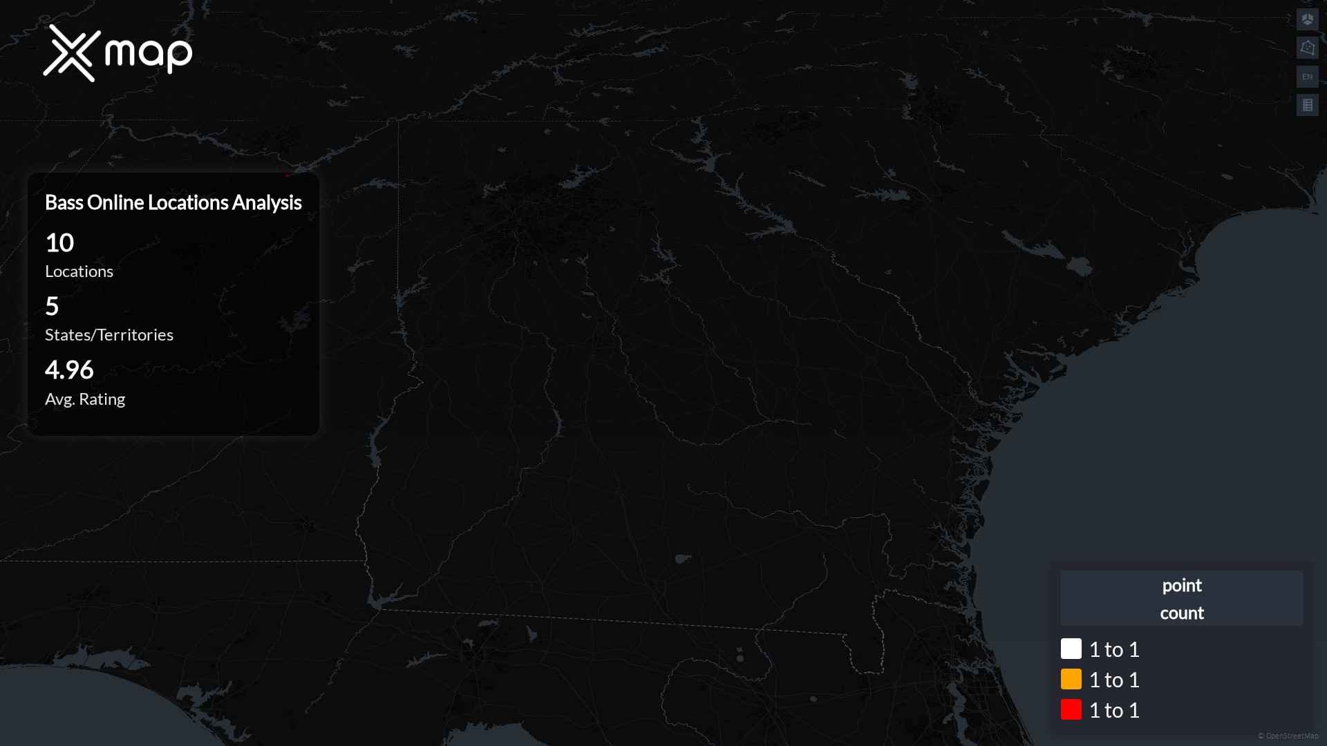Bass Online POI data enables clear measurement of footprint and demand. Analysts can rank states and cities by location count, compare coverage on a per-capita basis, and use traffic scores and review volumes to spot high-performing markets and under-served pockets. The result is an objective view of saturation, growth opportunities, and performance outliers.