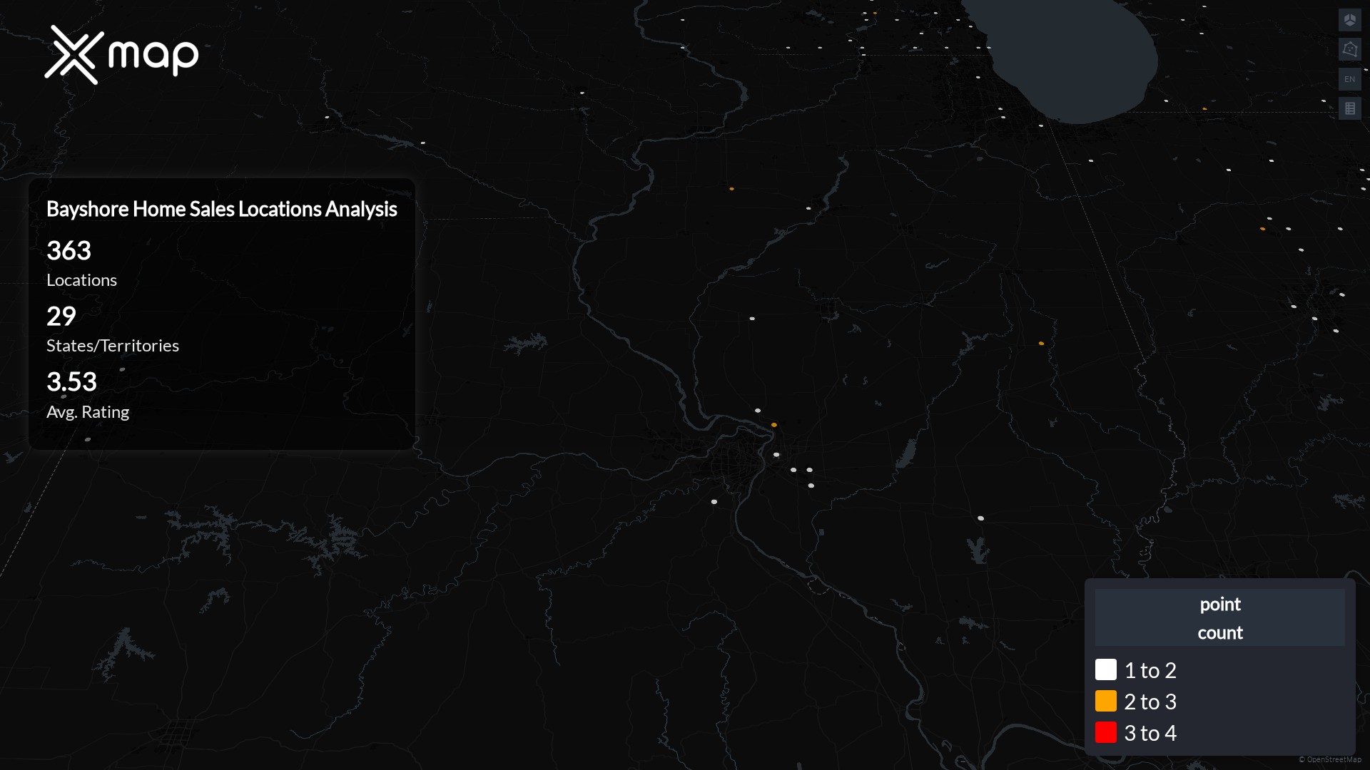 Bayshore Home Sales has 363 locations across the United States of America. The key variables shows the most infleuntial aspects for Bayshore Home Sales locations nationwide. This provides a closer look of how Bayshore Home Sales is operating from different prespectives.