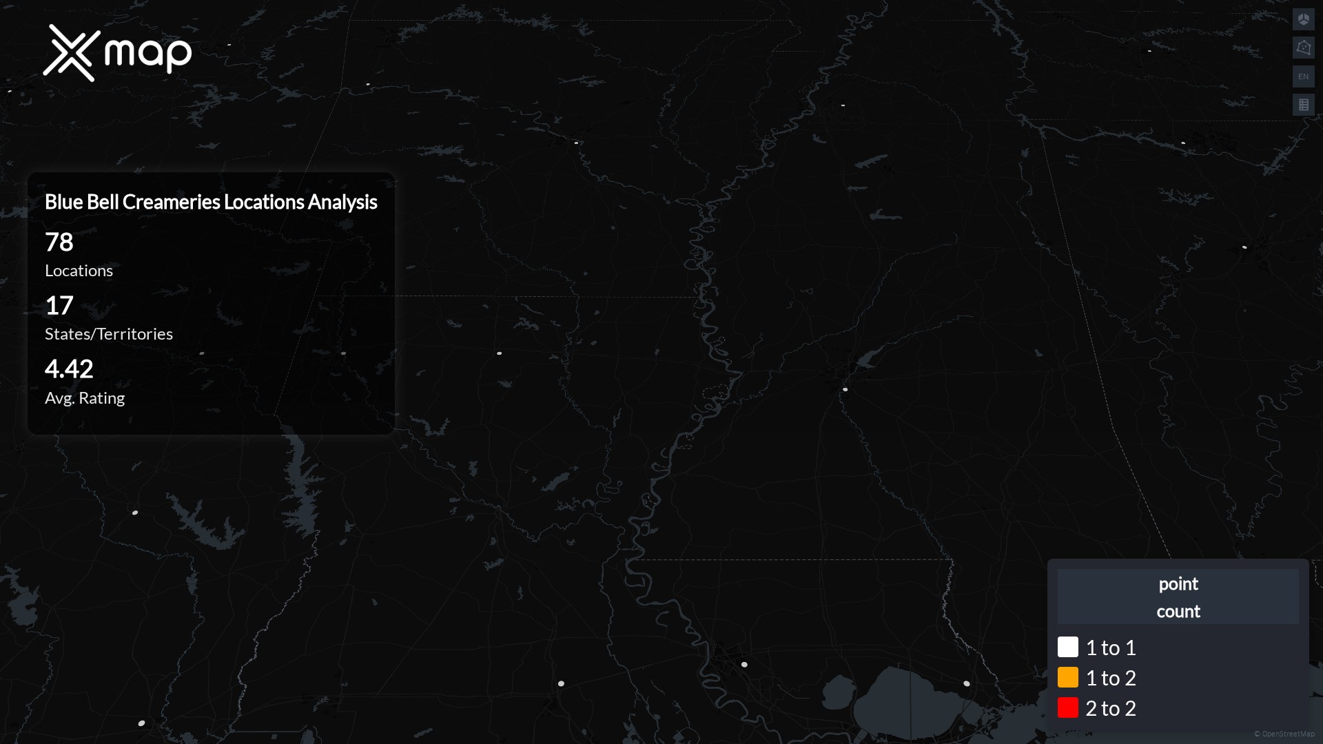 Blue Bell Creameries has 78 locations across the United States of America. The key variables shows the most infleuntial aspects for Blue Bell Creameries locations nationwide. This provides a closer look of how Blue Bell Creameries is operating from different prespectives.