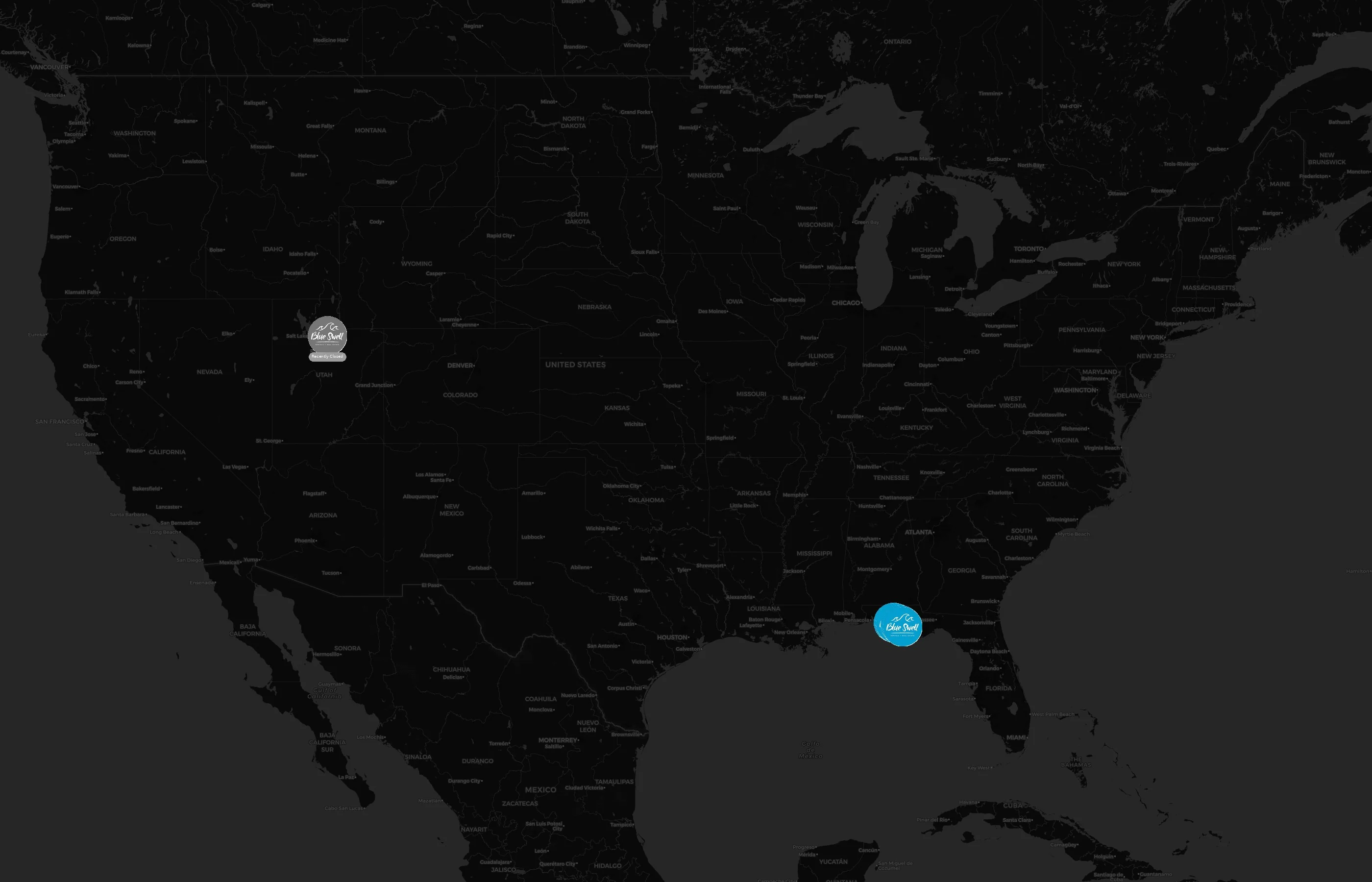 Blue Swell operates 10 United States of America locations across 2 states. Largest clusters are in Florida and Utah; the top 10 states contain 100.0% of sites. Coverage is thinner in Florida and Utah.