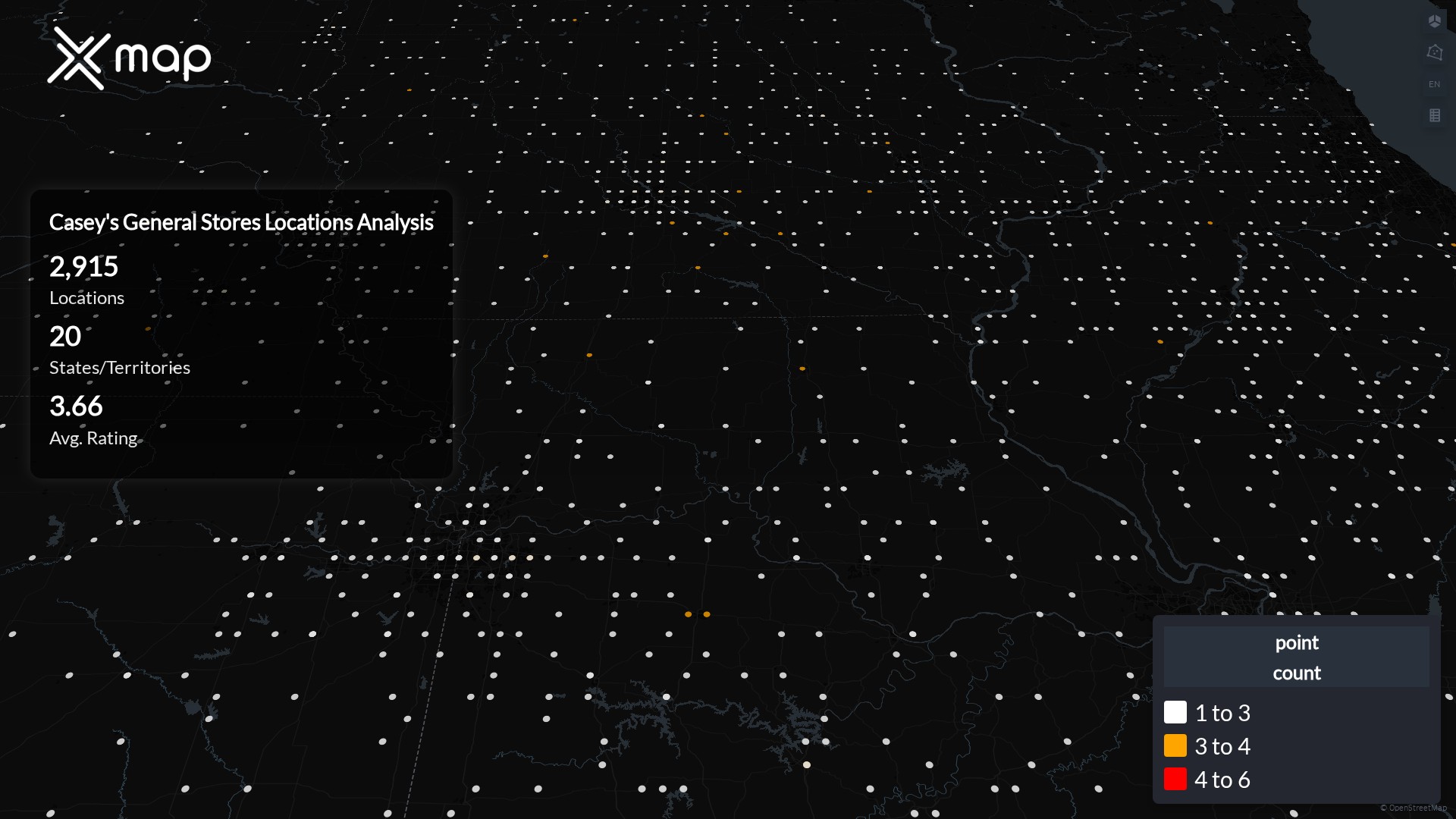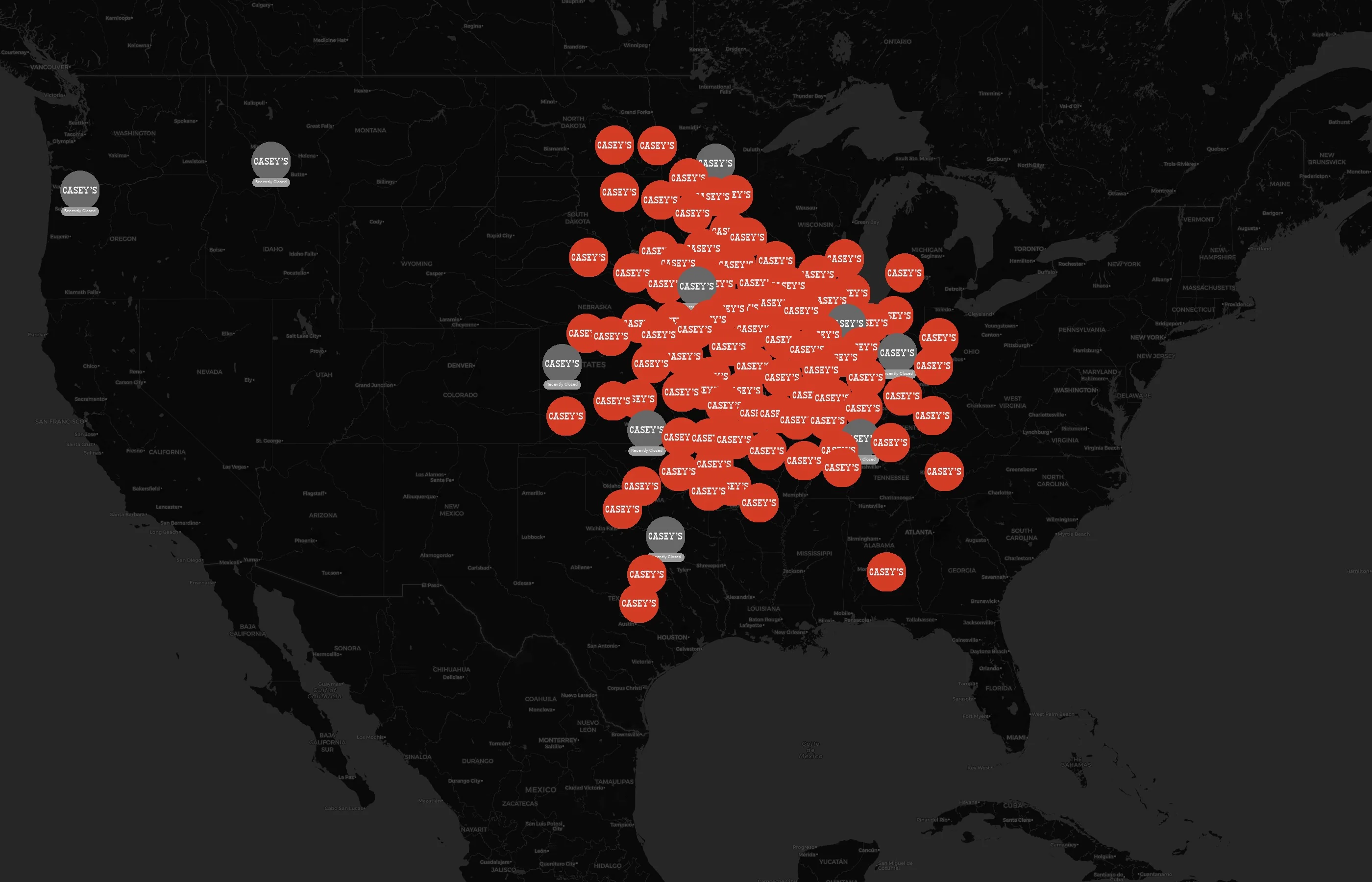 Casey's General Stores has 2915 locations across the United States of America. The key variables shows the most infleuntial aspects for Casey's General Stores locations nationwide. This provides a closer look of how Casey's General Stores is operating from different prespectives.