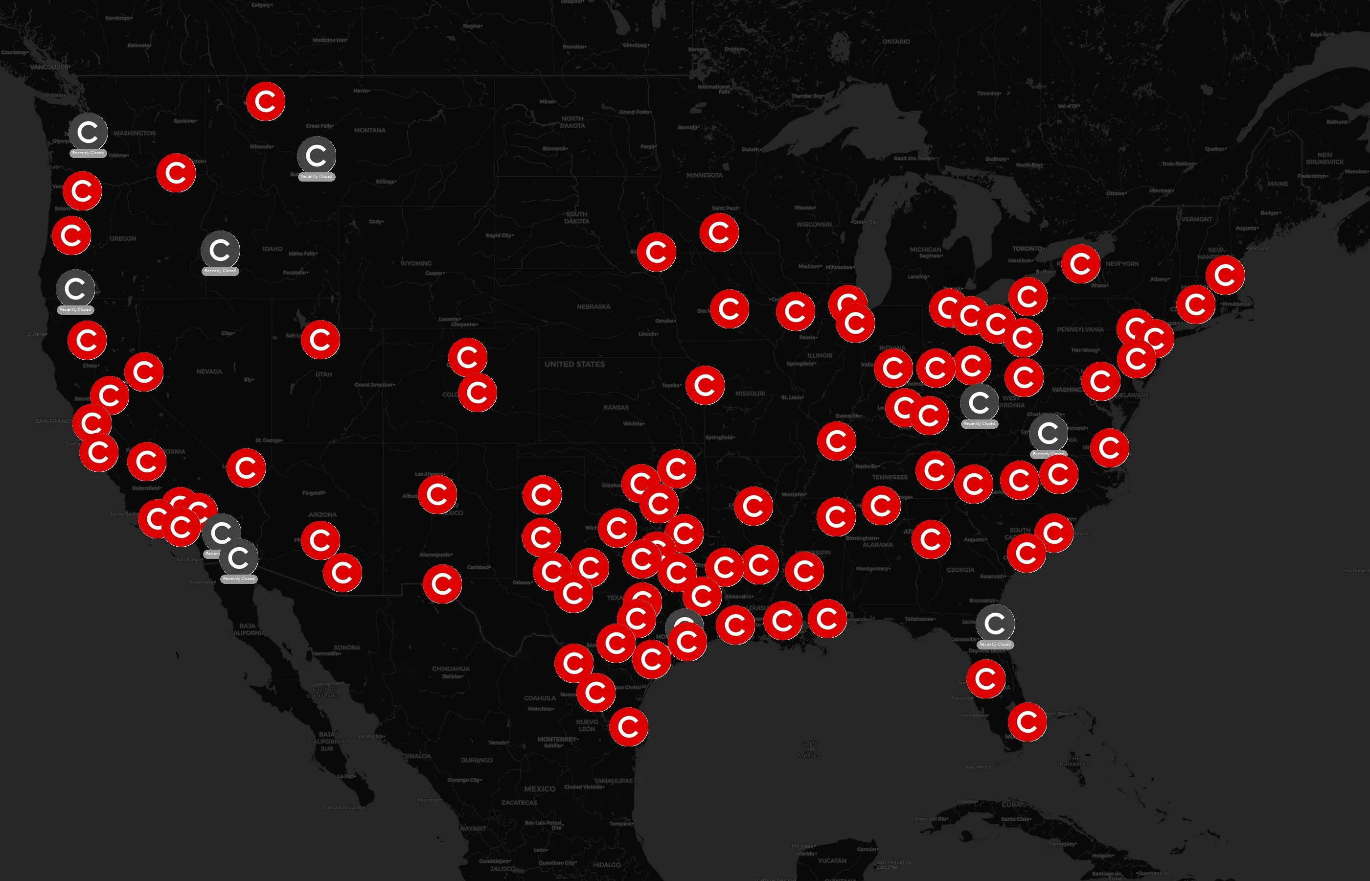 The complete dataset of Cinemark locations across the United States of America is available for download, including coordinates, traffic patterns, and operational status.