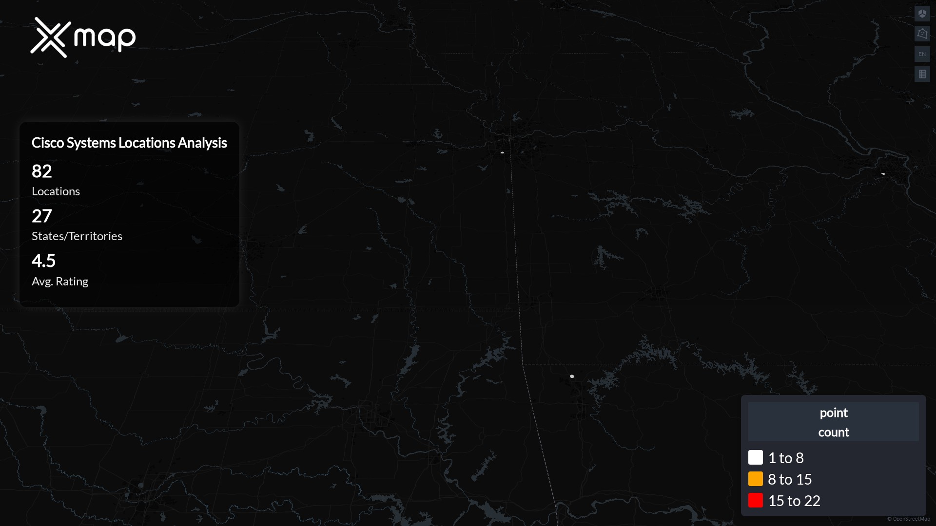 Cisco Systems POI data enables clear measurement of footprint and demand. Analysts can rank states and cities by location count, compare coverage on a per-capita basis, and use traffic scores and review volumes to spot high-performing markets and under-served pockets. The result is an objective view of saturation, growth opportunities, and performance outliers.