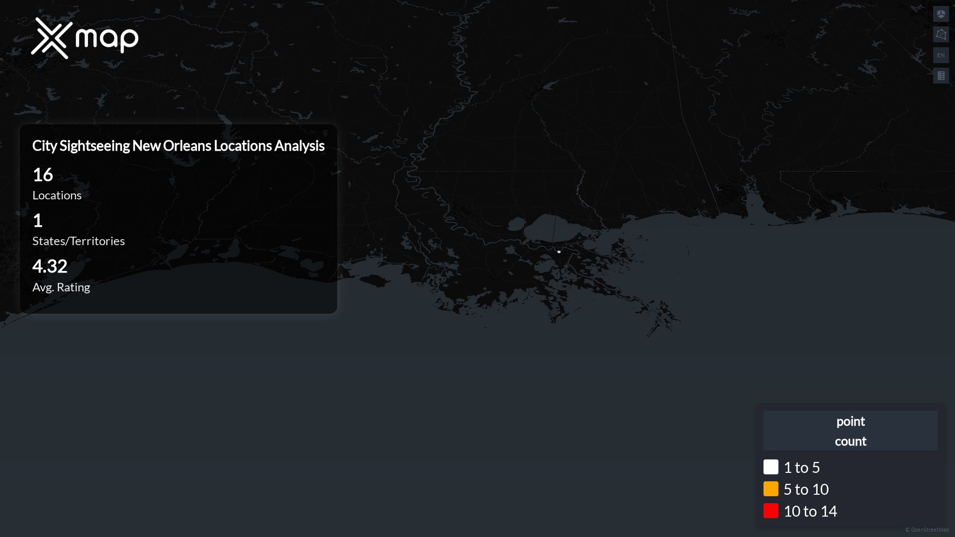 City Sightseeing New Orleans has 16 locations across the United States of America. The key variables shows the most infleuntial aspects for City Sightseeing New Orleans locations nationwide. This provides a closer look of how City Sightseeing New Orleans is operating from different prespectives.