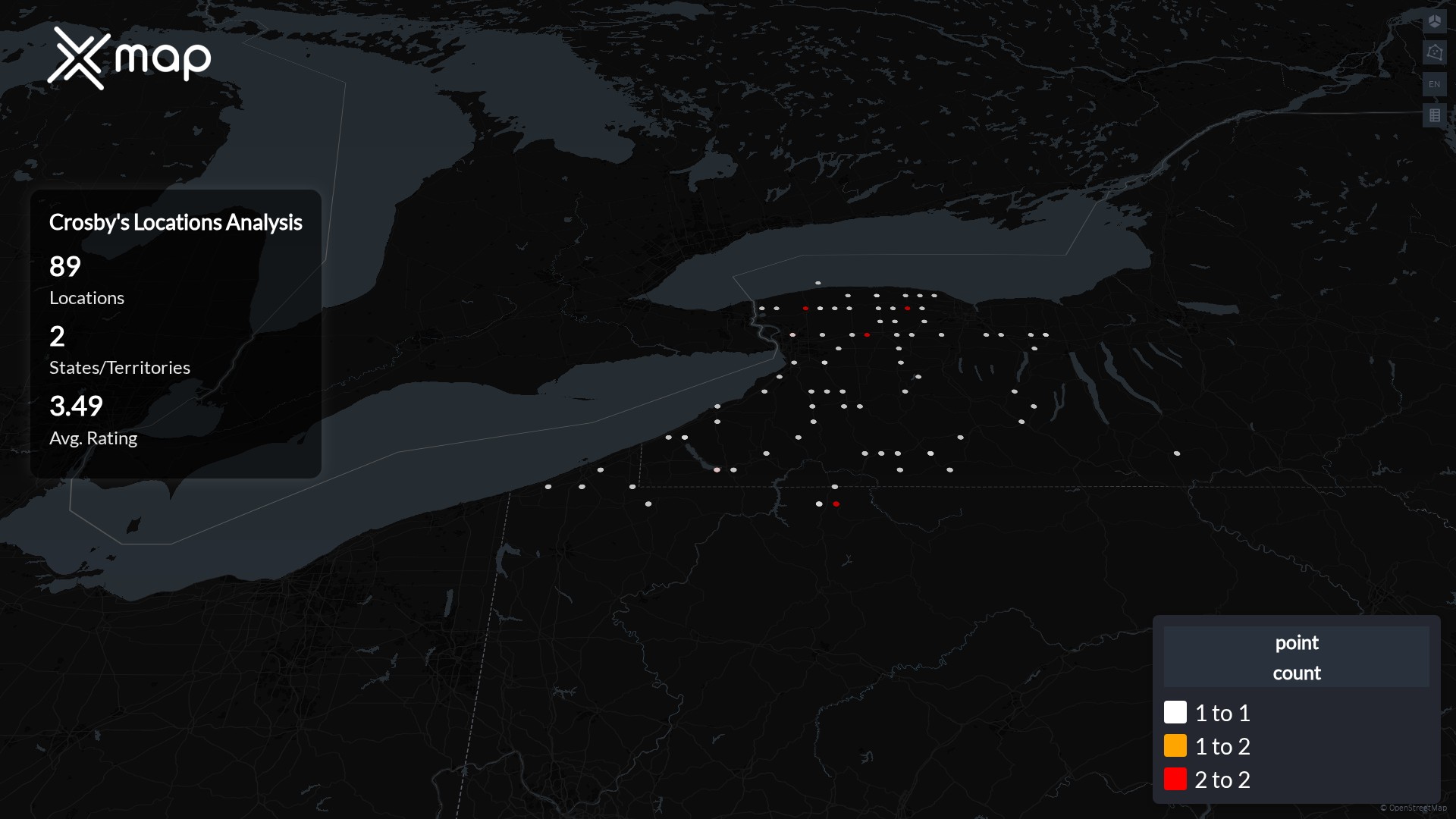 Crosby's has 89 United States of America. The key variables shows the most infleuntial aspects for Crosby's locations nationwide. This provides a closer look of how Crosby's is operating from different prespectives.locations across the