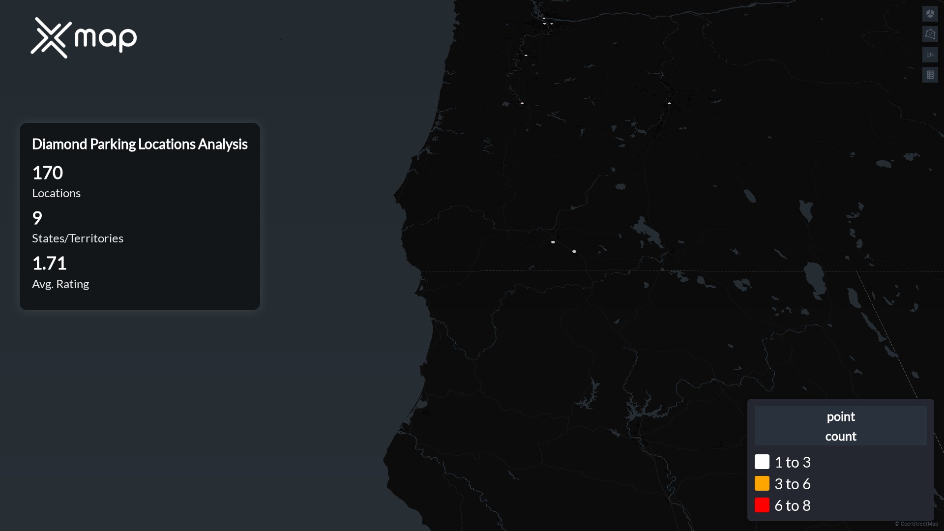 Diamond Parking has 170 United States of America. The key variables shows the most infleuntial aspects for Diamond Parking locations nationwide. This provides a closer look of how Diamond Parking is operating from different prespectives.locations across the