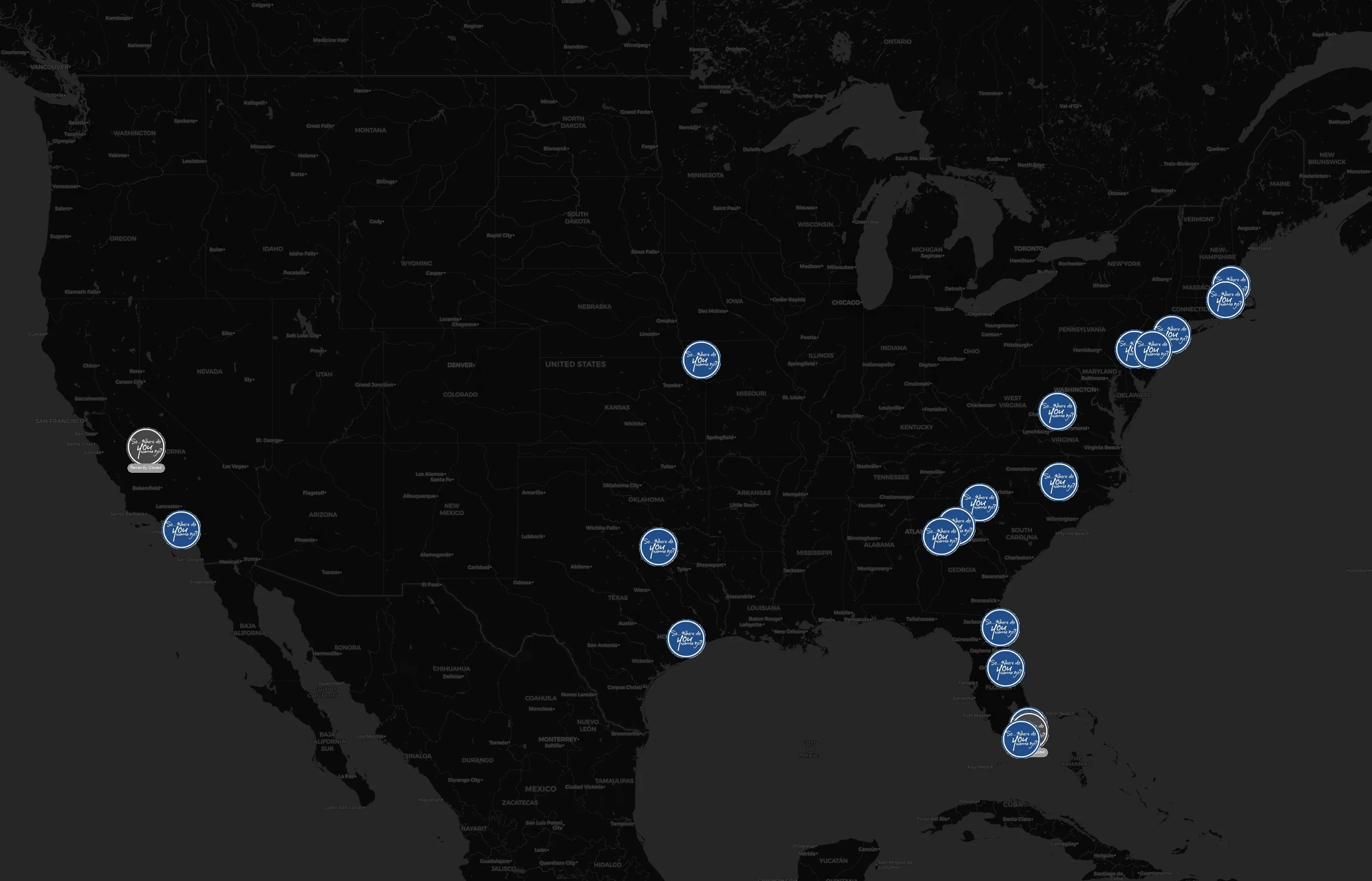 Street-level clusters show corridors where multiple Dream Vacations locations sit within the same neighborhood indicating strong local presence and coherence. Dream Vacations operates a total of 20 nationwide.