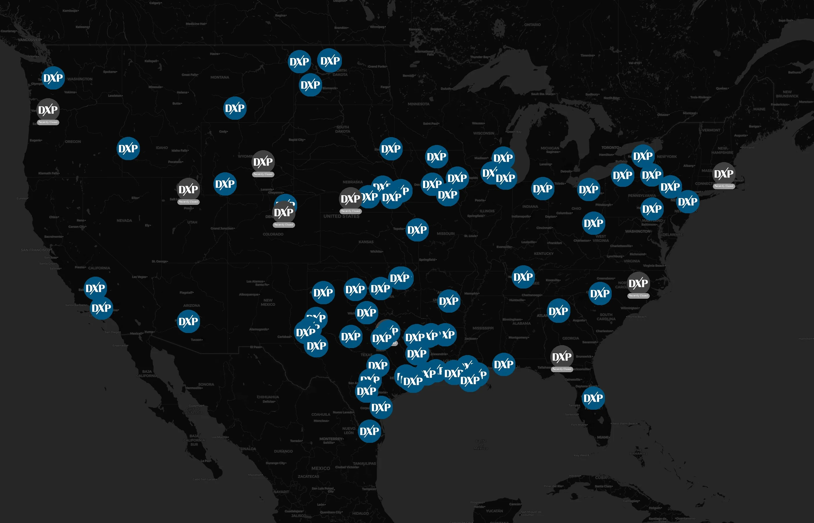The complete dataset of DXP Enterprises locations across the United States of America is available for download, including coordinates, traffic patterns, and operational status.