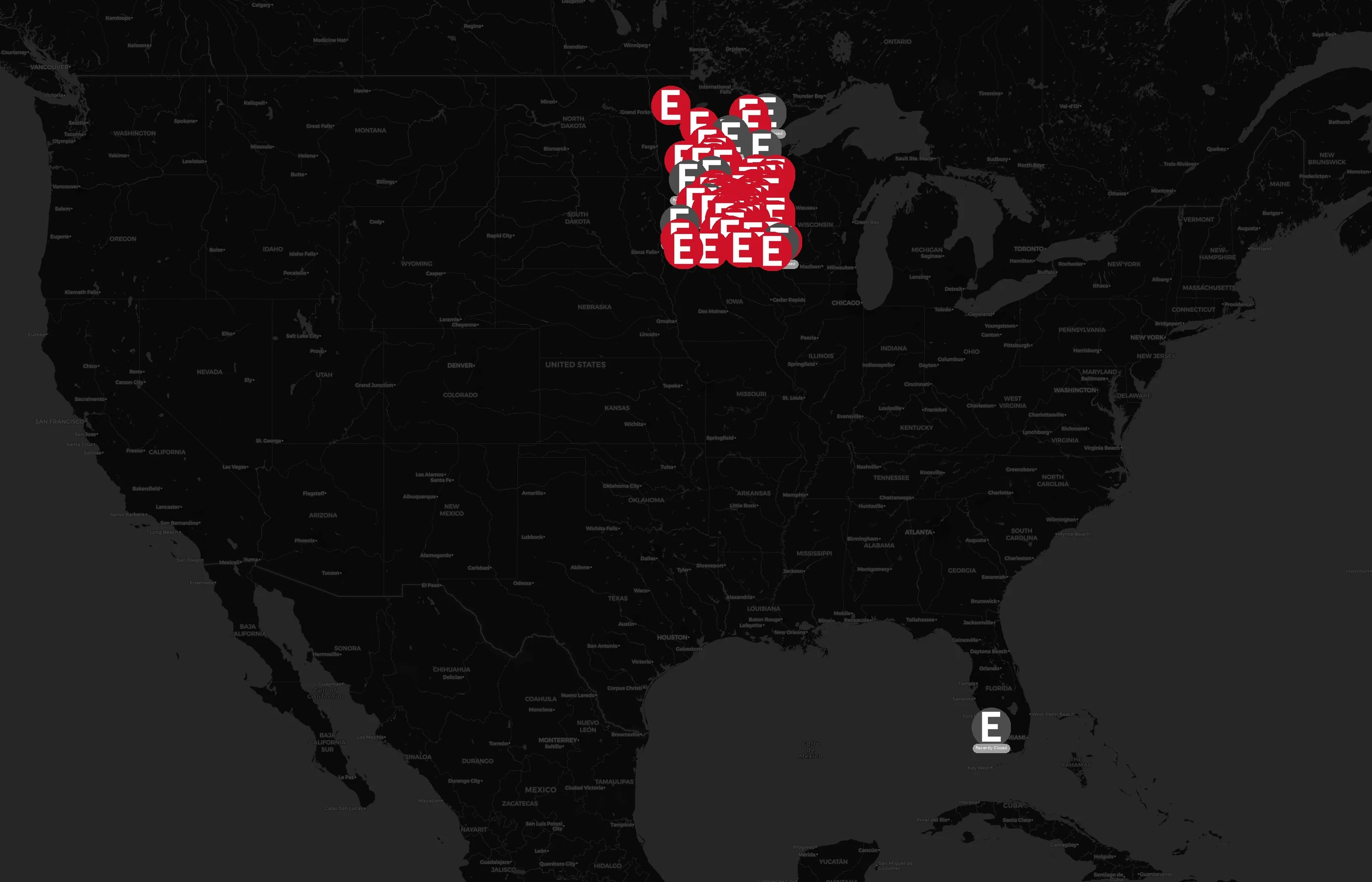 Edina Realty operates 157 United States of America locations across 3 states. Largest clusters are in Minnesota, Wisconsin, and Florida; the top 10 states contain 100.0% of sites. Coverage is thinner in Minnesota, Wisconsin, and Florida.