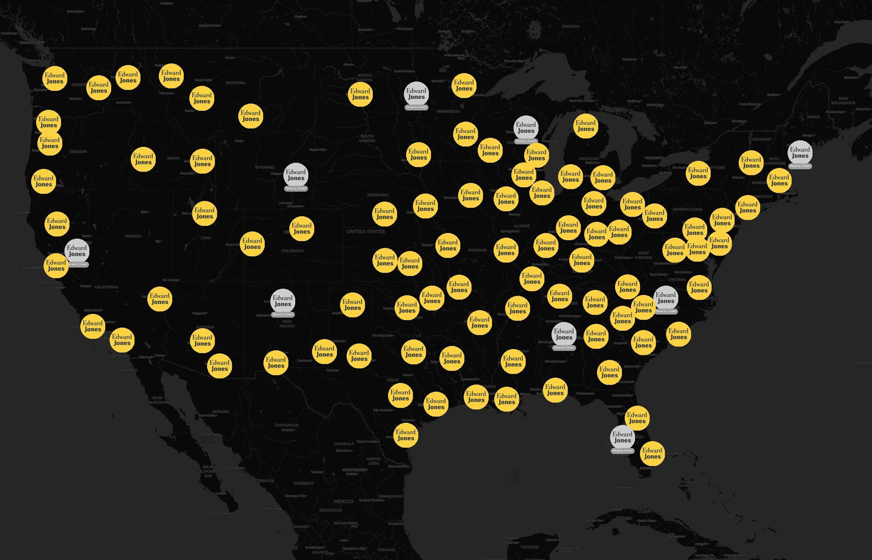Edward Jones has 5219 locations across the United States of America. The key variables shows the most infleuntial aspects for Edward Jones locations nationwide. This provides a closer look of how Edward Jones is operating from different prespectives.