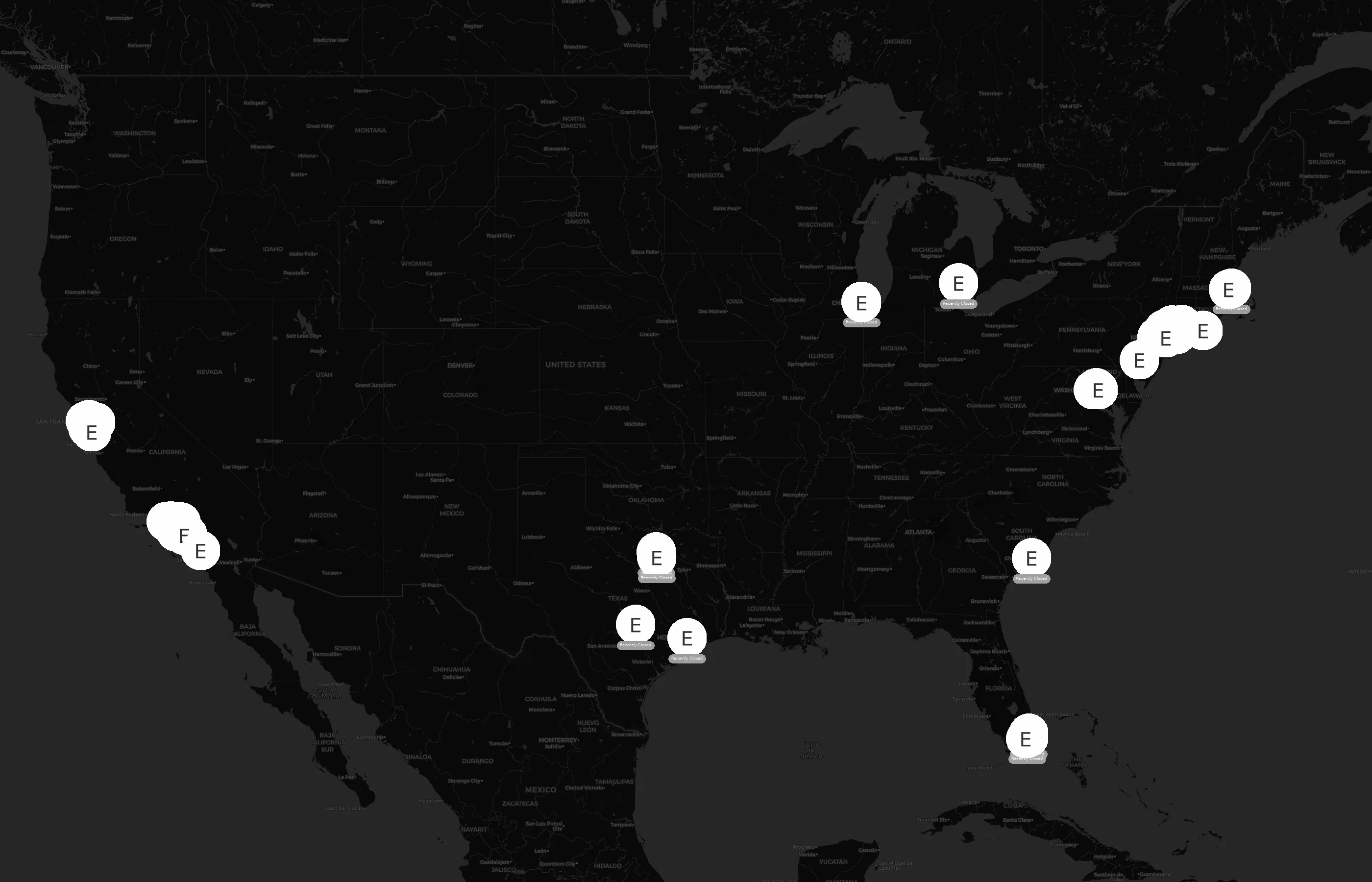 Locations concentrate around major metros such as NewYork, LosAngeles, SanFrancisco, Miami-Dade, and Cook. The top 10 cities account for 76.9% of U.S. sites.