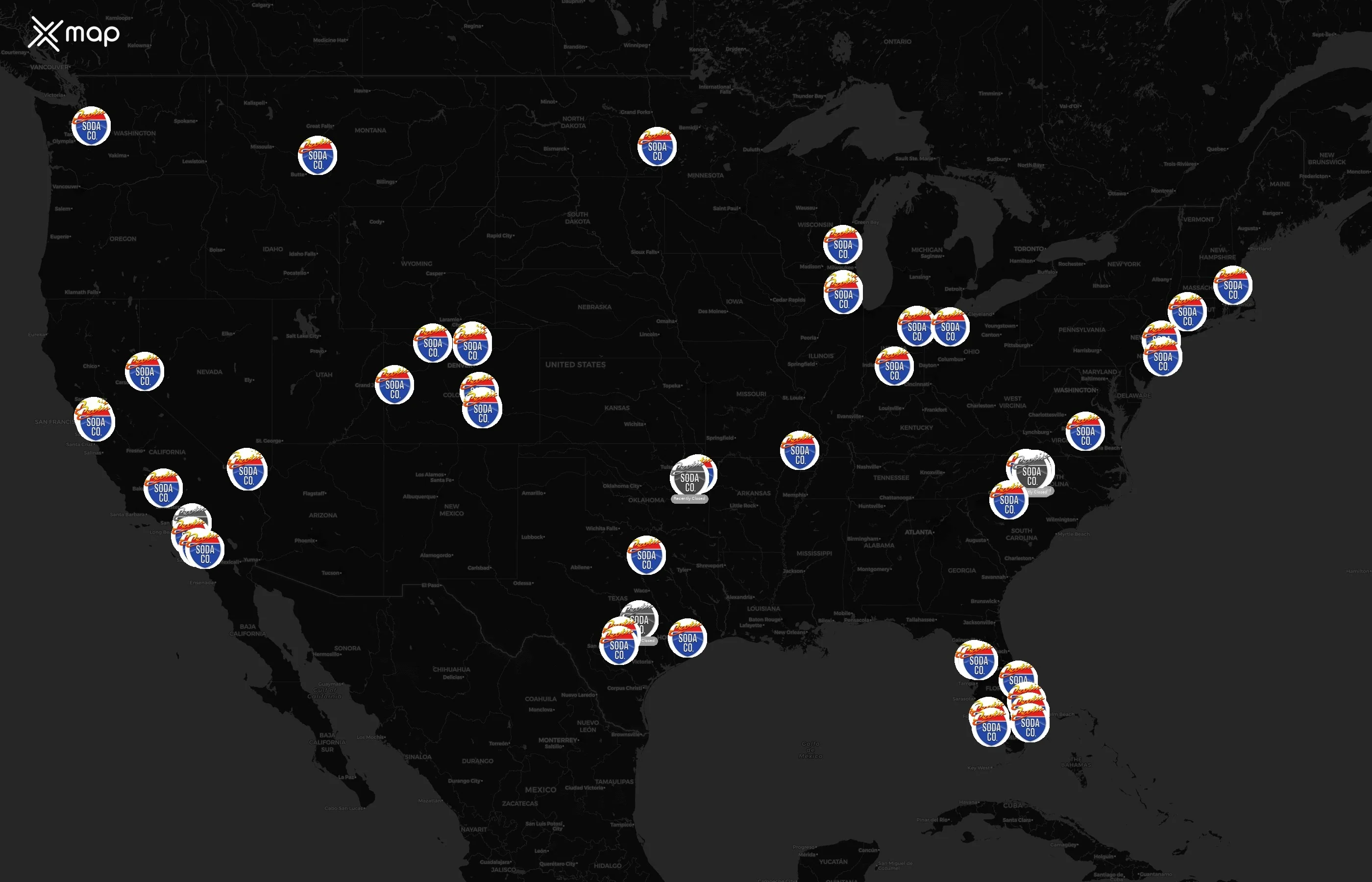 The complete dataset of Exotic Soda Co. locations across the United States of America is available for download, including coordinates, traffic patterns, and operational status.