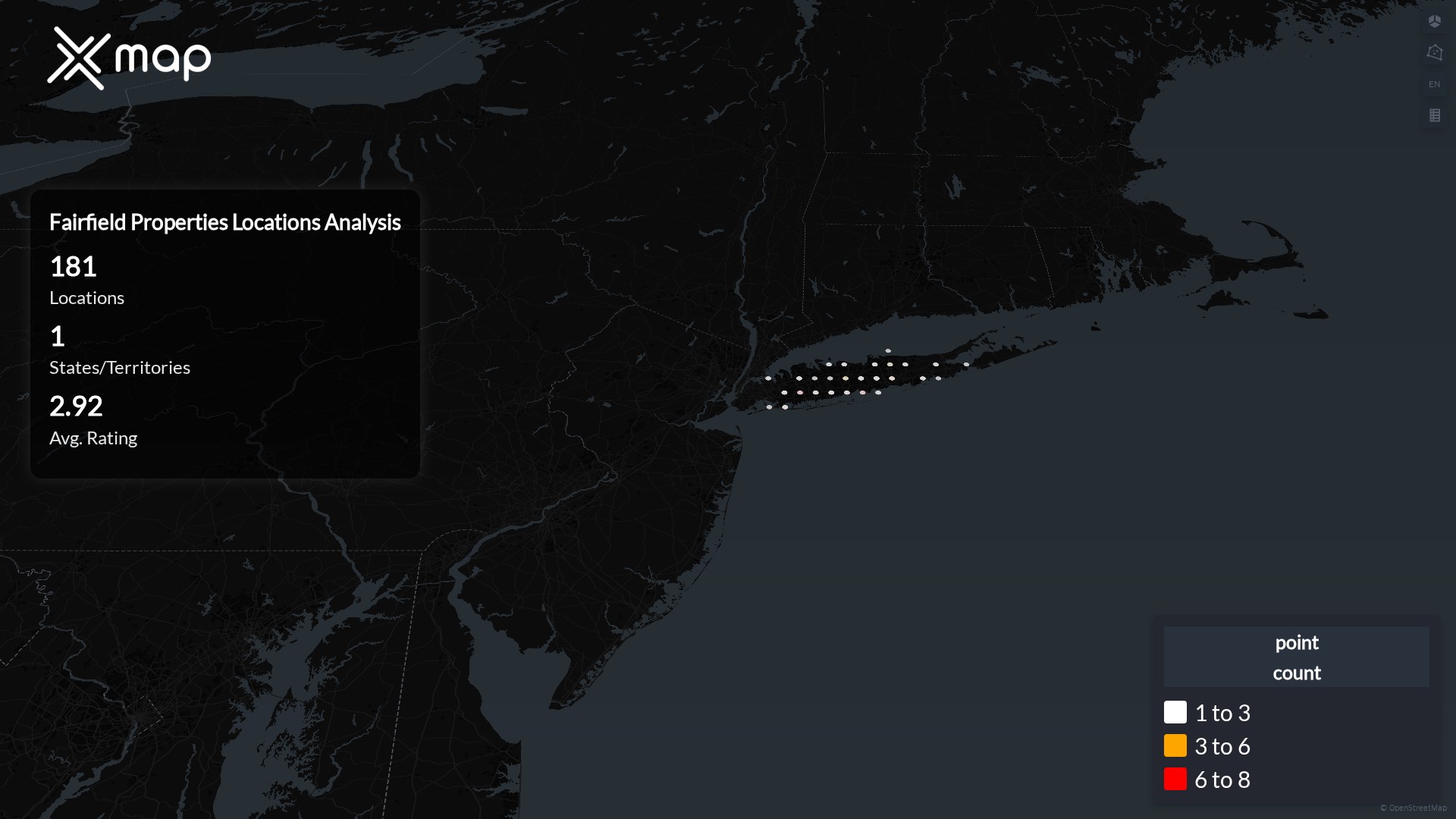 Fairfield Properties operates 181 United States of America locations across 1 states. Largest clusters are in NewYork; the top 10 states contain 100.0% of sites. Coverage is thinner in NewYork.
