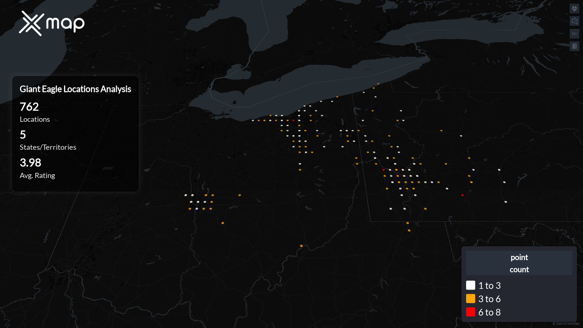 Giant Eagle has 762 locations across the United States of America. The key variables shows the most infleuntial aspects for Giant Eagle locations nationwide. This provides a closer look of how Giant Eagle is operating from different prespectives.