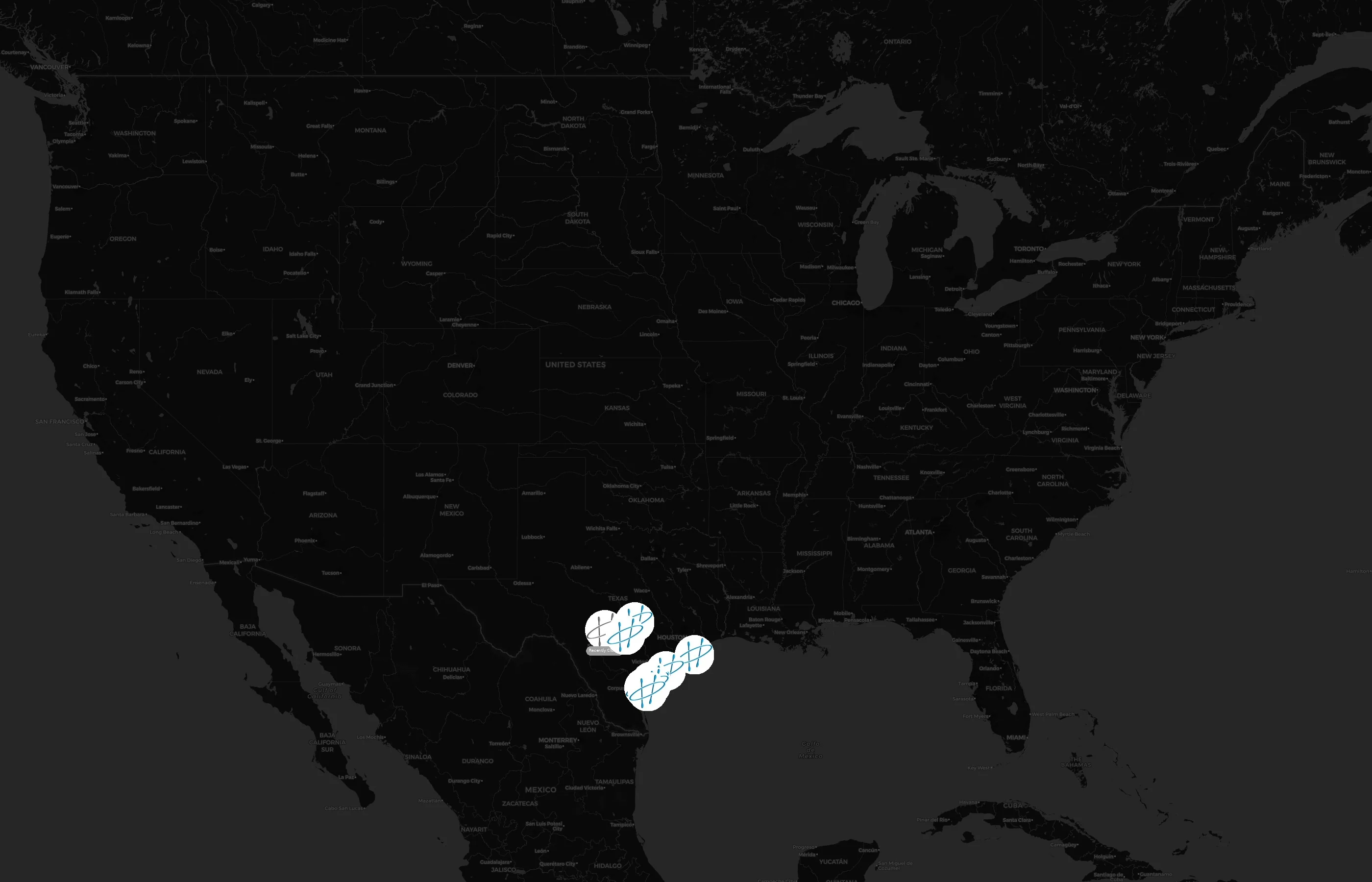 Locations concentrate around major metros such as Nueces, Calhoun, Aransas, Brazoria, and Comal. The top 10 cities account for 100.0% of U.S. sites.