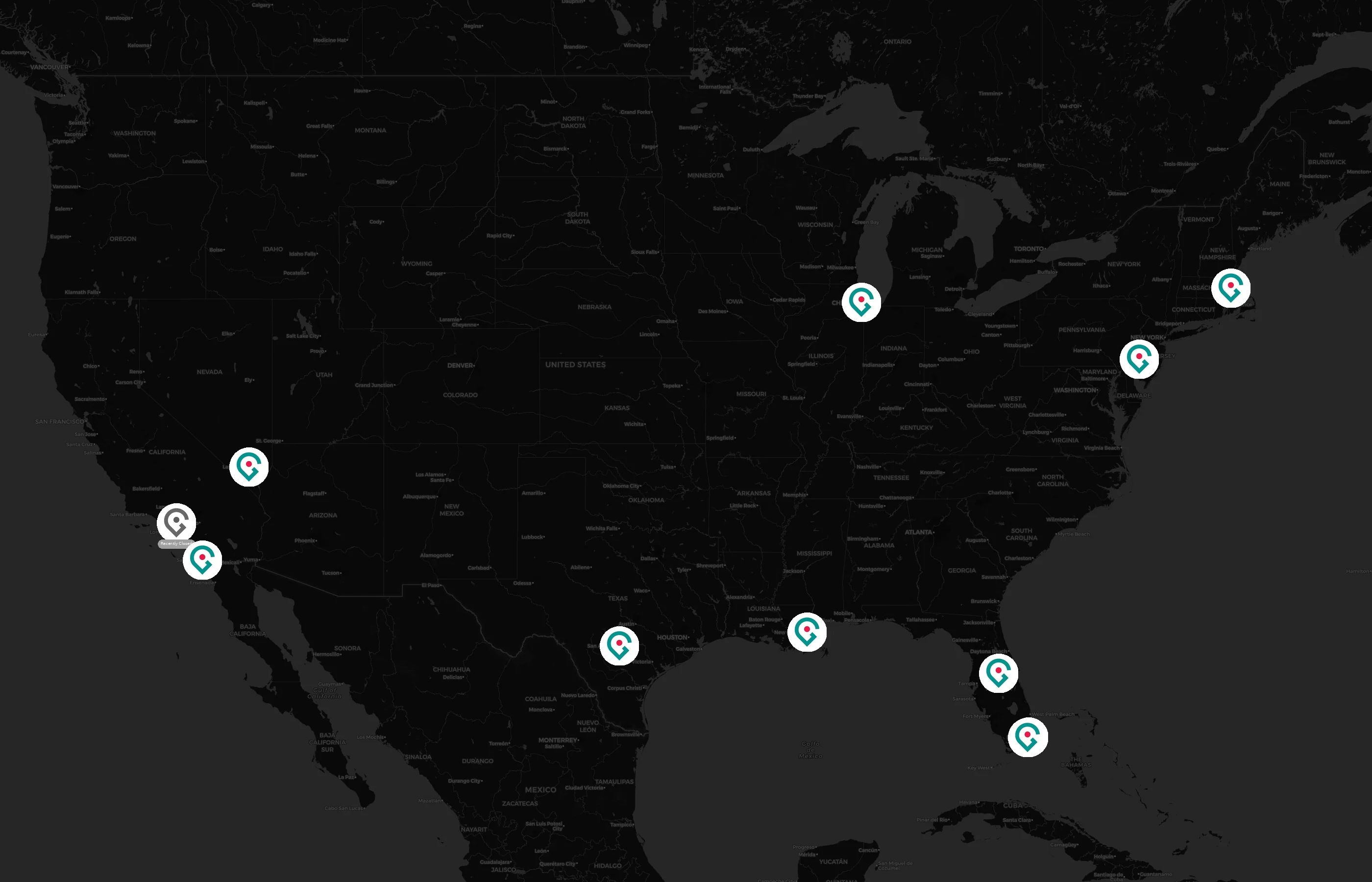 Locations concentrate around major metros such as Miami-Dade, Suffolk, Bexar, Cook, and Clark. The top 10 cities account for 92.3% of U.S. sites.