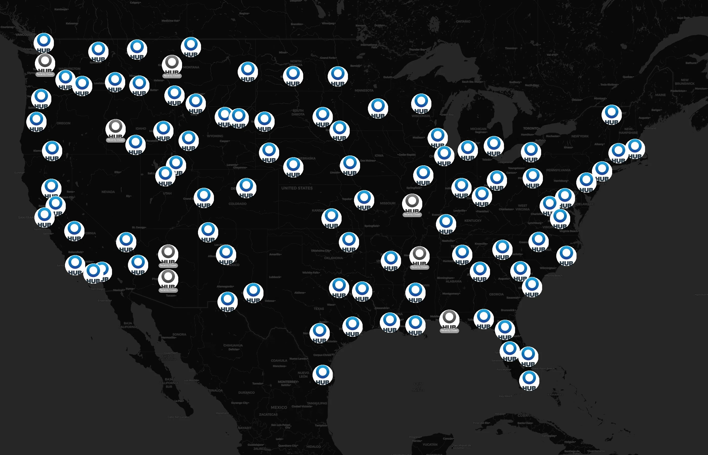 The complete dataset of HUB International locations across the United States of America is available for download, including coordinates, traffic patterns, and operational status.