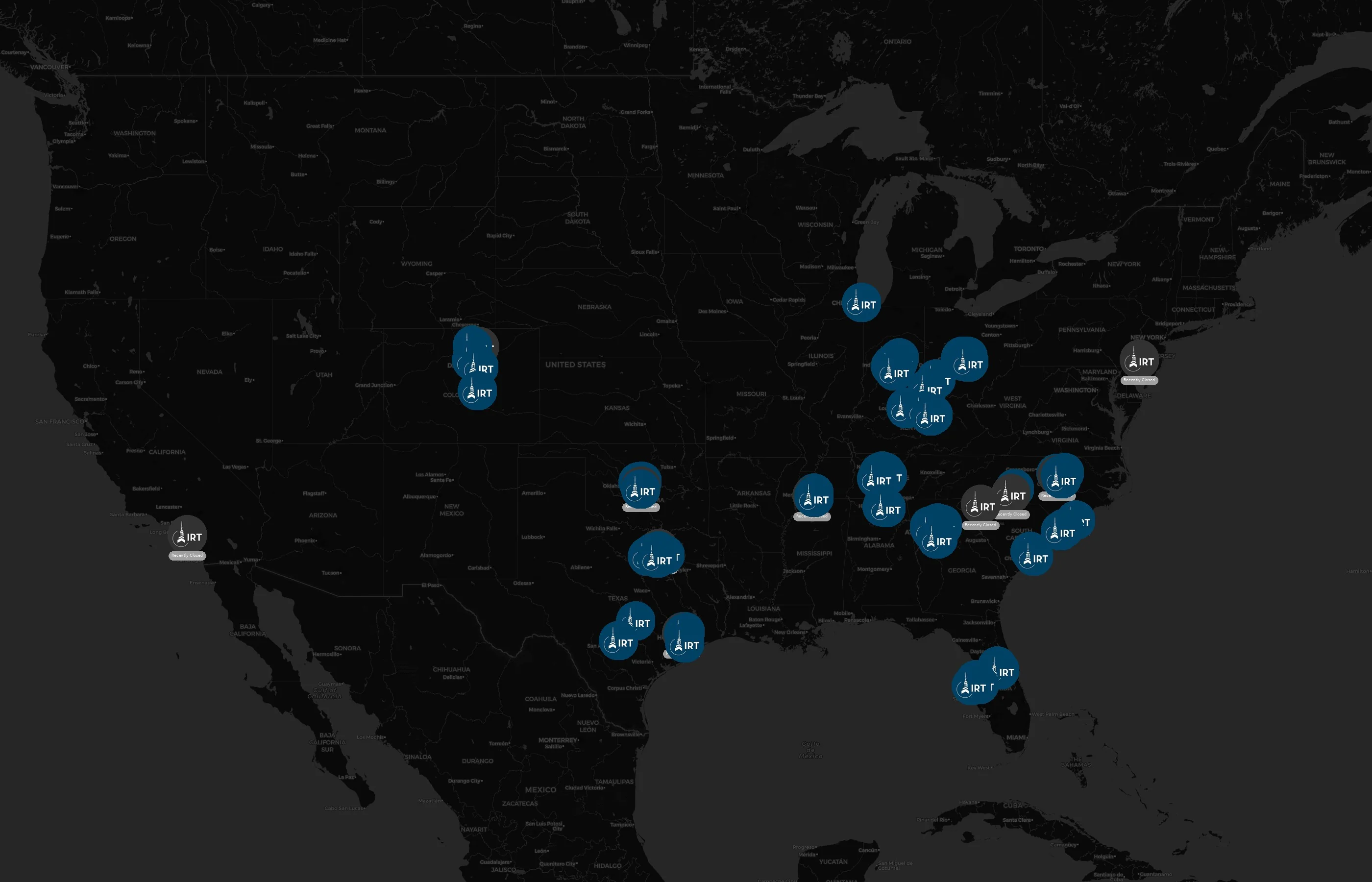 The complete dataset of IRT Living locations across the United States of America is available for download, including coordinates, traffic patterns, and operational status.