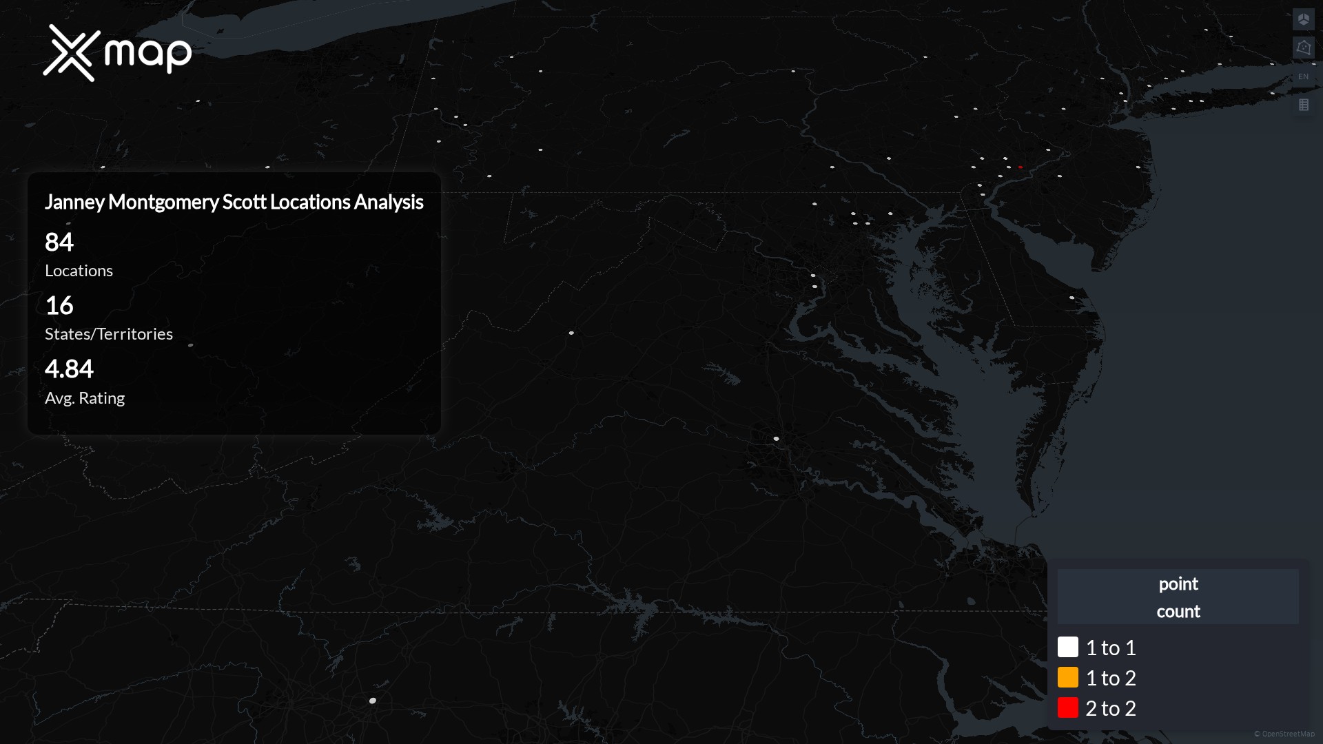 Janney Montgomery Scott POI data enables clear measurement of footprint and demand. Analysts can rank states and cities by location count, compare coverage on a per-capita basis, and use traffic scores and review volumes to spot high-performing markets and under-served pockets. The result is an objective view of saturation, growth opportunities, and performance outliers.