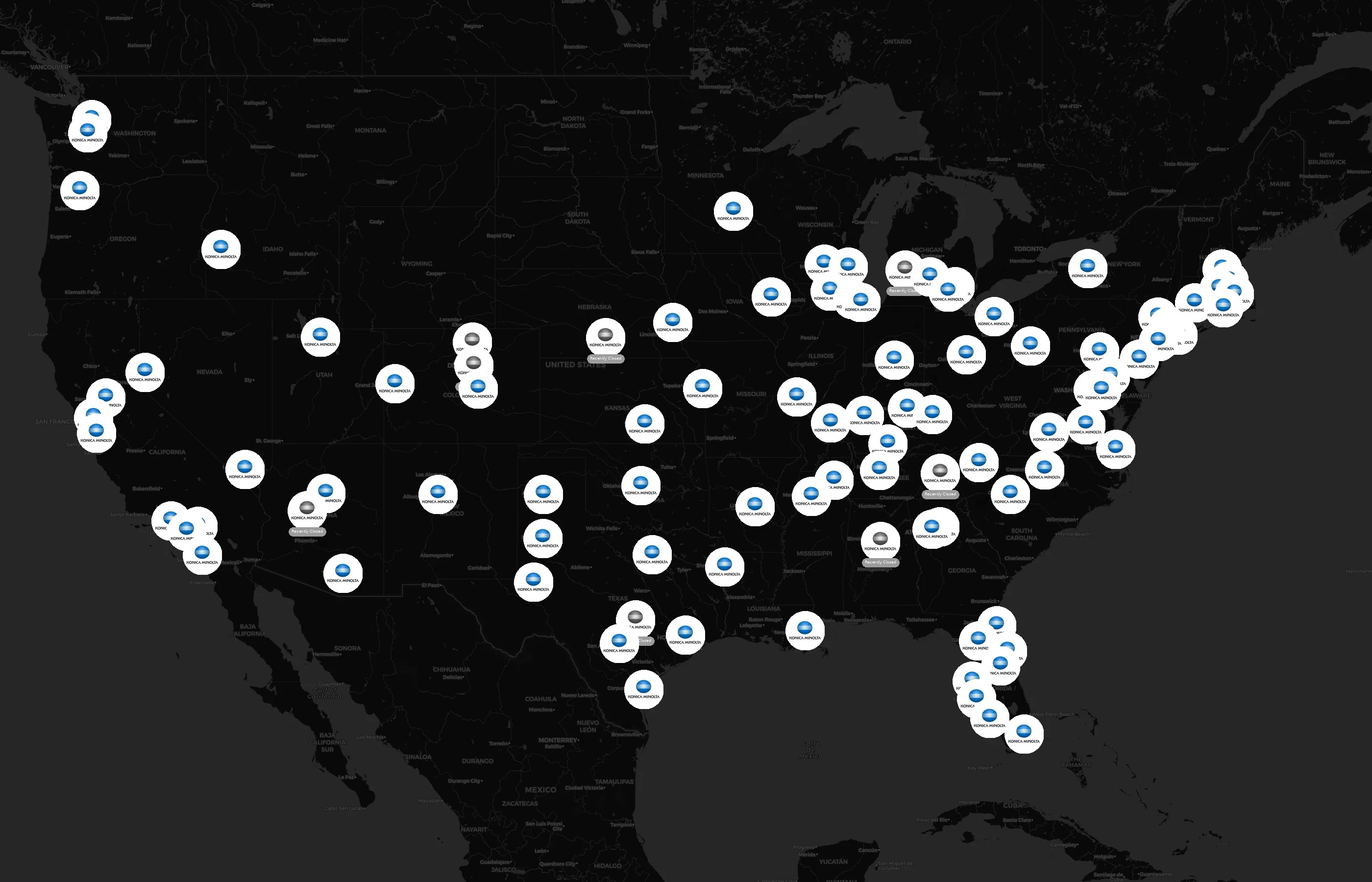 The complete dataset of Konica Minolta Business Solutions locations across the United States of America is available for download, including coordinates, traffic patterns, and operational status.