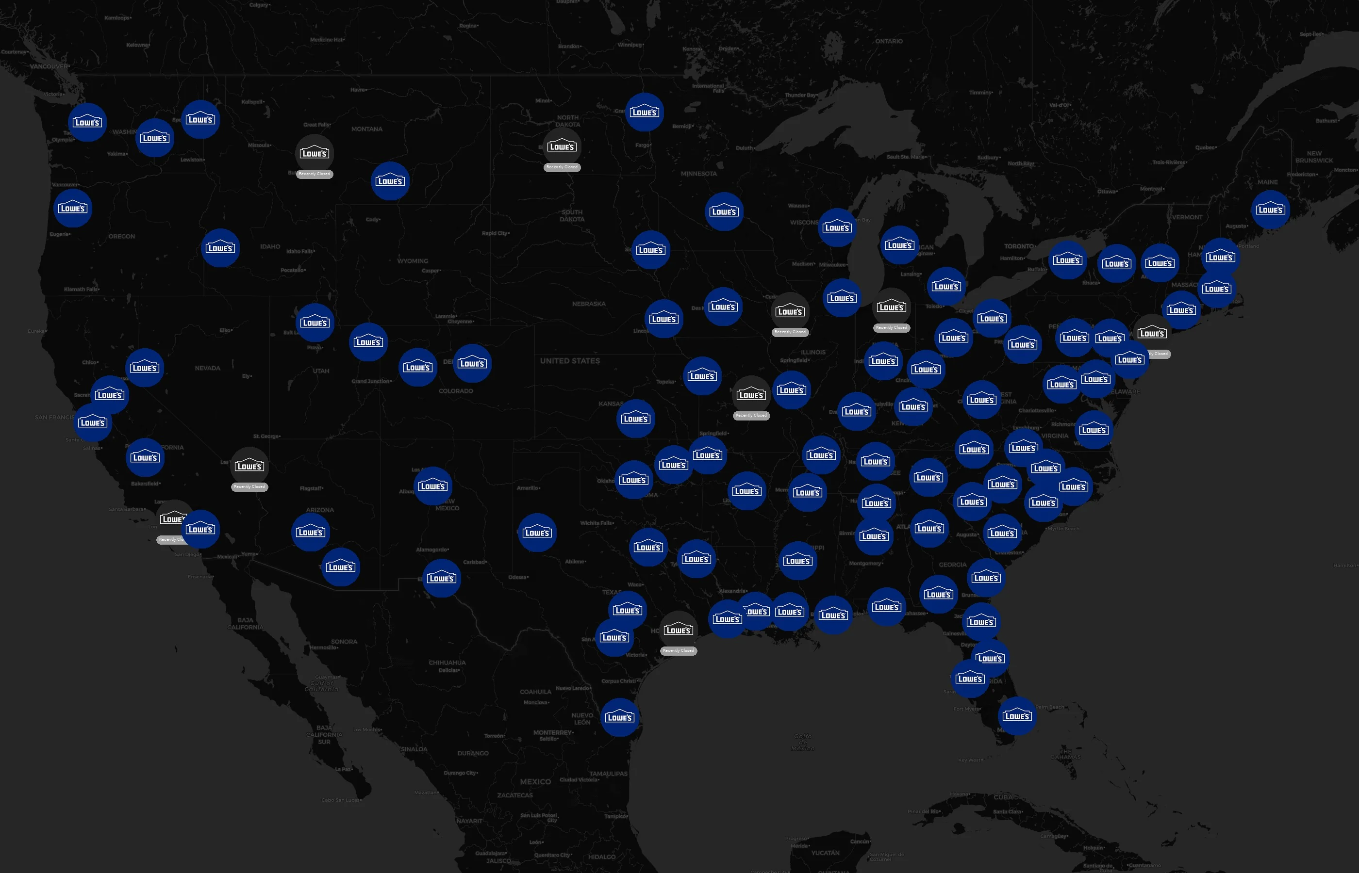 The complete dataset of Lowe's locations across the United States of America is available for download, including coordinates, traffic patterns, and operational status.
