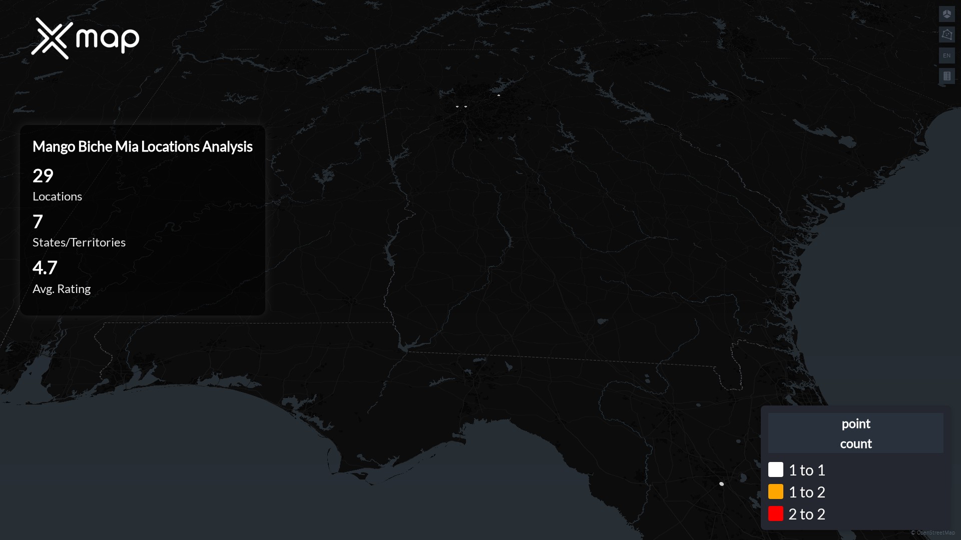 Mango Biche Mia has 29 locations across the United States of America. The key variables shows the most infleuntial aspects for Mango Biche Mia locations nationwide. This provides a closer look of how Mango Biche Mia is operating from different prespectives.