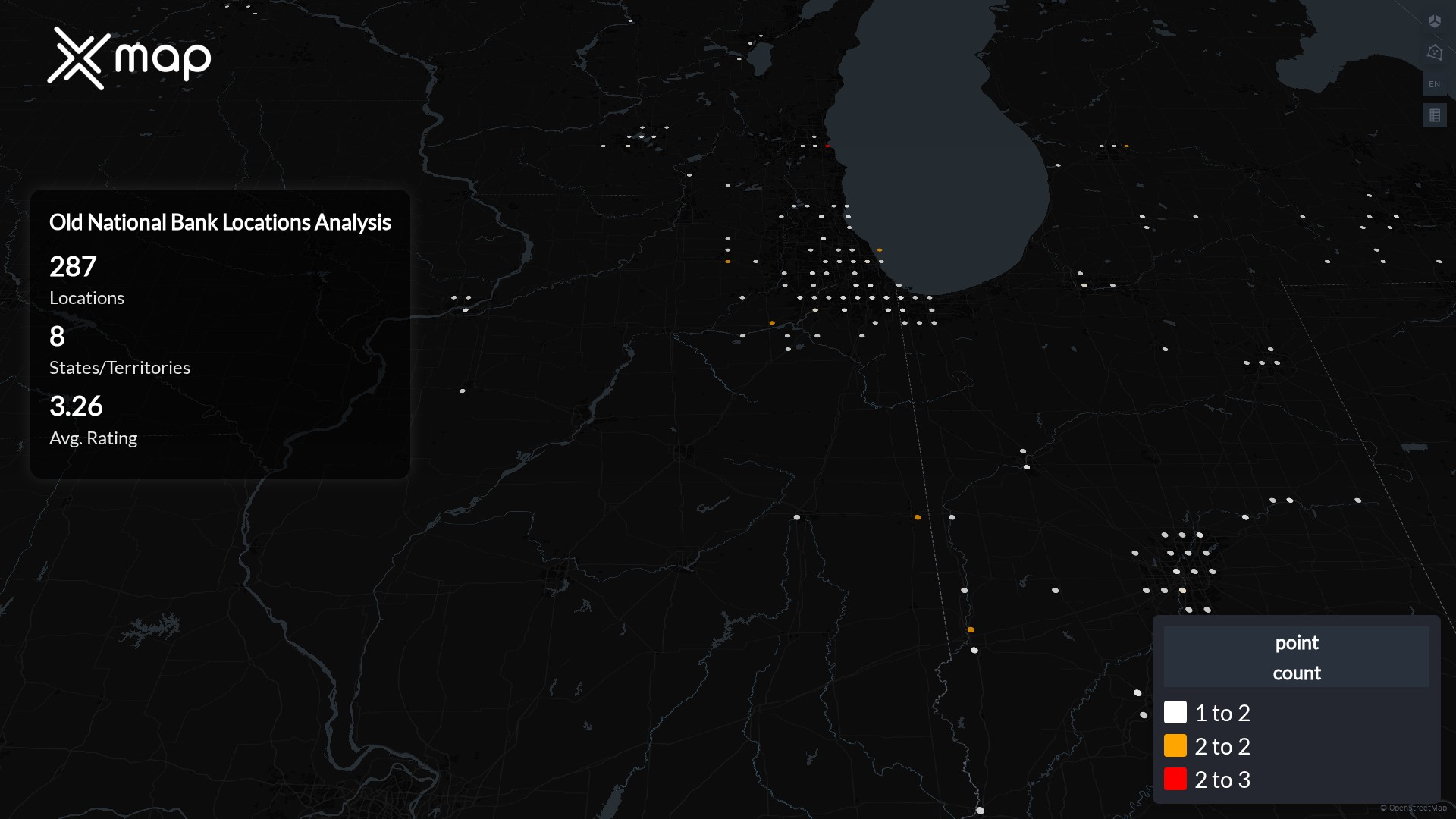 Old National Bank has 287 locations across the United States of America. The key variables shows the most infleuntial aspects for Old National Bank locations nationwide. This provides a closer look of how Old National Bank is operating from different prespectives.