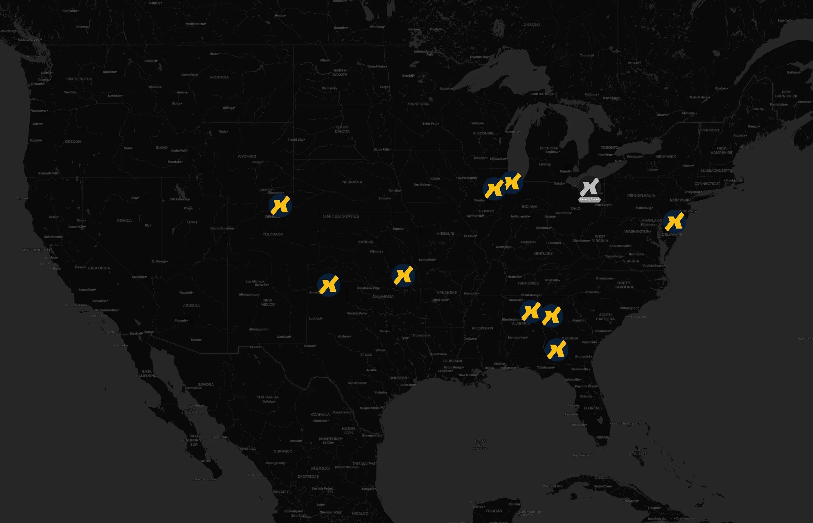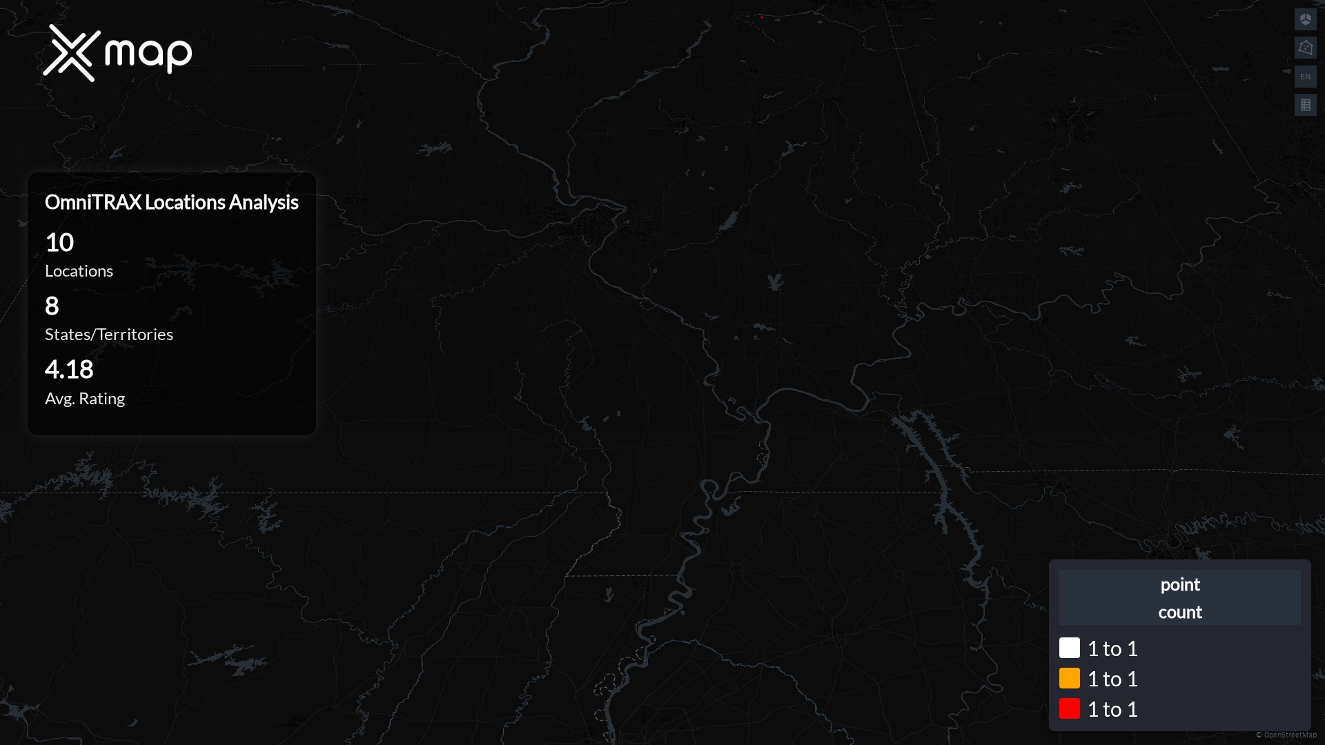 Street-level clusters show corridors where multiple OmniTRAX locations sit within the same neighborhood indicating strong local presence and coherence. OmniTRAX operates a total of 10 nationwide.