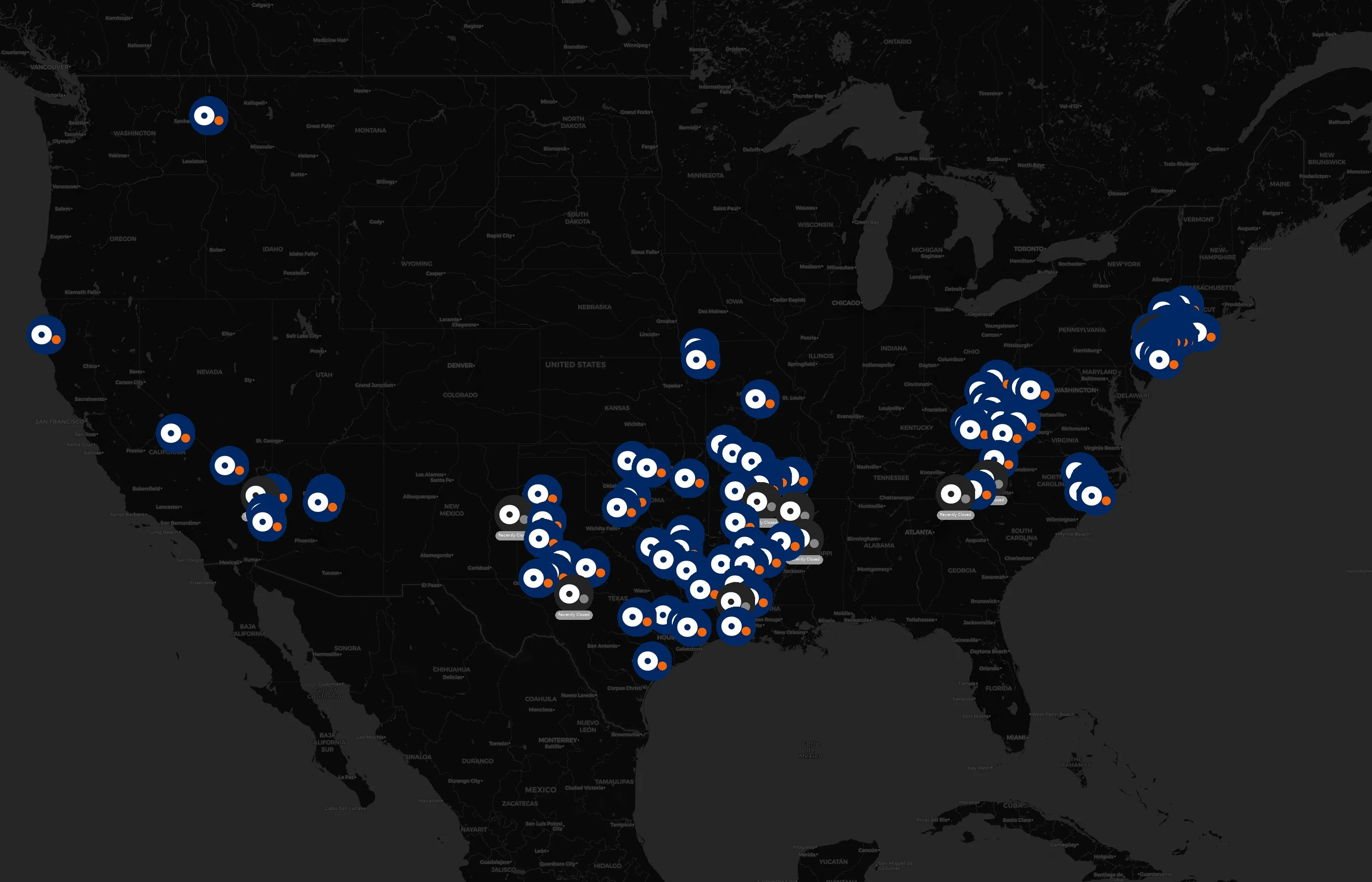 Locations concentrate around major metros such as Westchester, Suffolk, Nassau, Bronx, and Kings. The top 10 cities account for 32.8% of U.S. sites.