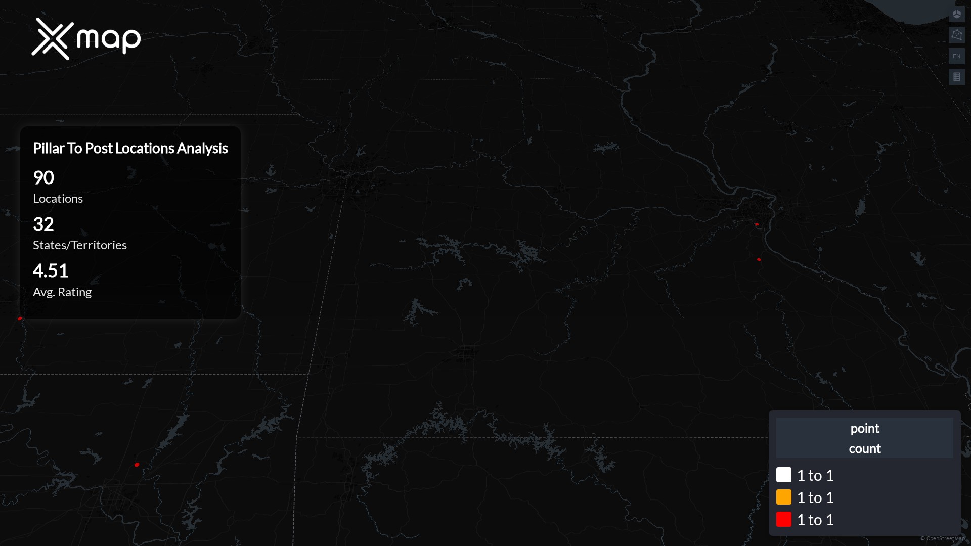 Pillar To Post POI data enables clear measurement of footprint and demand. Analysts can rank states and cities by location count, compare coverage on a per-capita basis, and use traffic scores and review volumes to spot high-performing markets and under-served pockets. The result is an objective view of saturation, growth opportunities, and performance outliers.