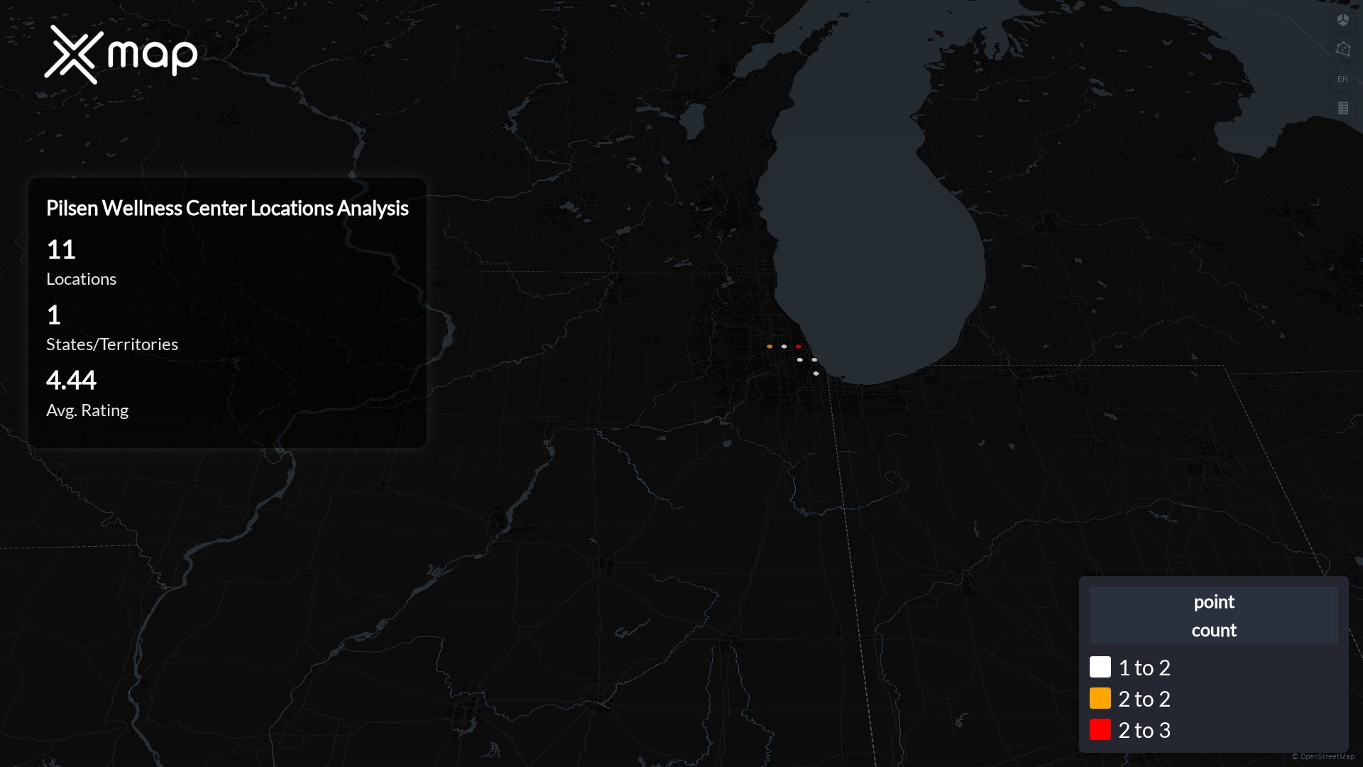 Street-level clusters show corridors where multiple Pilsen Wellness Center locations sit within the same neighborhood indicating strong local presence and coherence. Pilsen Wellness Center operates a total of 11 nationwide.