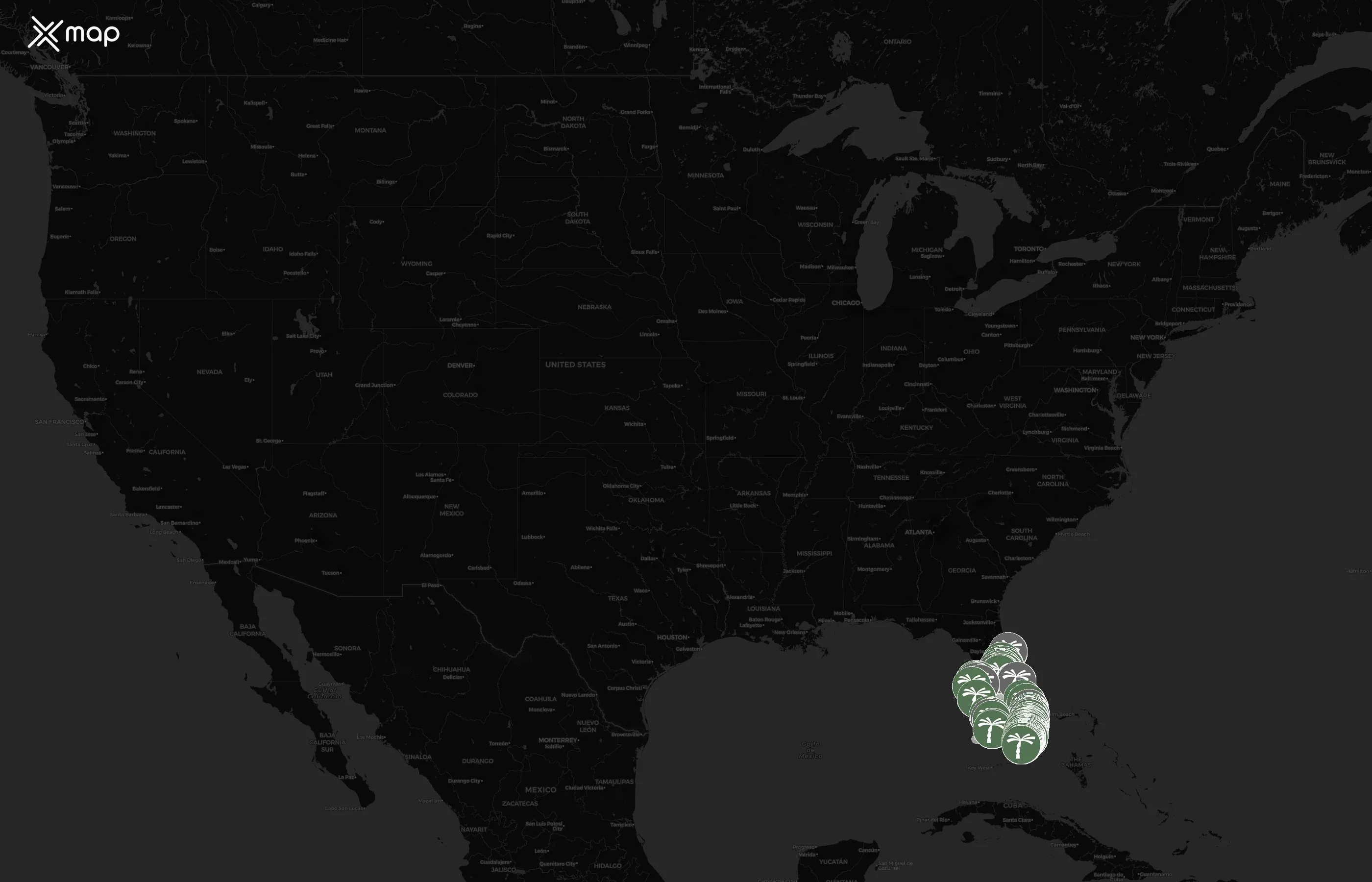 Locations concentrate around major metros such as Miami-Dade, Broward, Palm Beach, Orange, and Hillsborough. The top 10 cities account for 95.9% of U.S. sites.