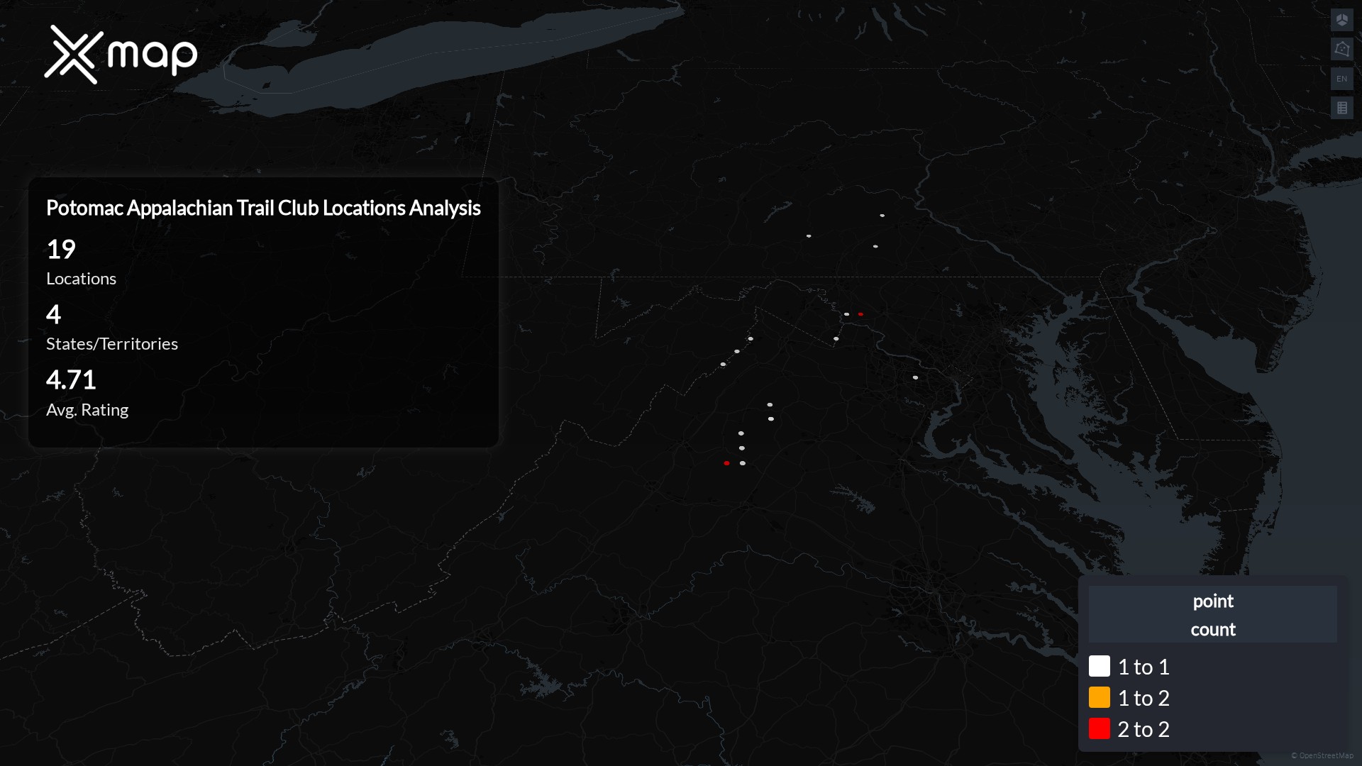 Potomac Appalachian Trail Club has 19 locations across the United States of America. The key variables shows the most infleuntial aspects for Potomac Appalachian Trail Club locations nationwide. This provides a closer look of how Potomac Appalachian Trail Club is operating from different prespectives.