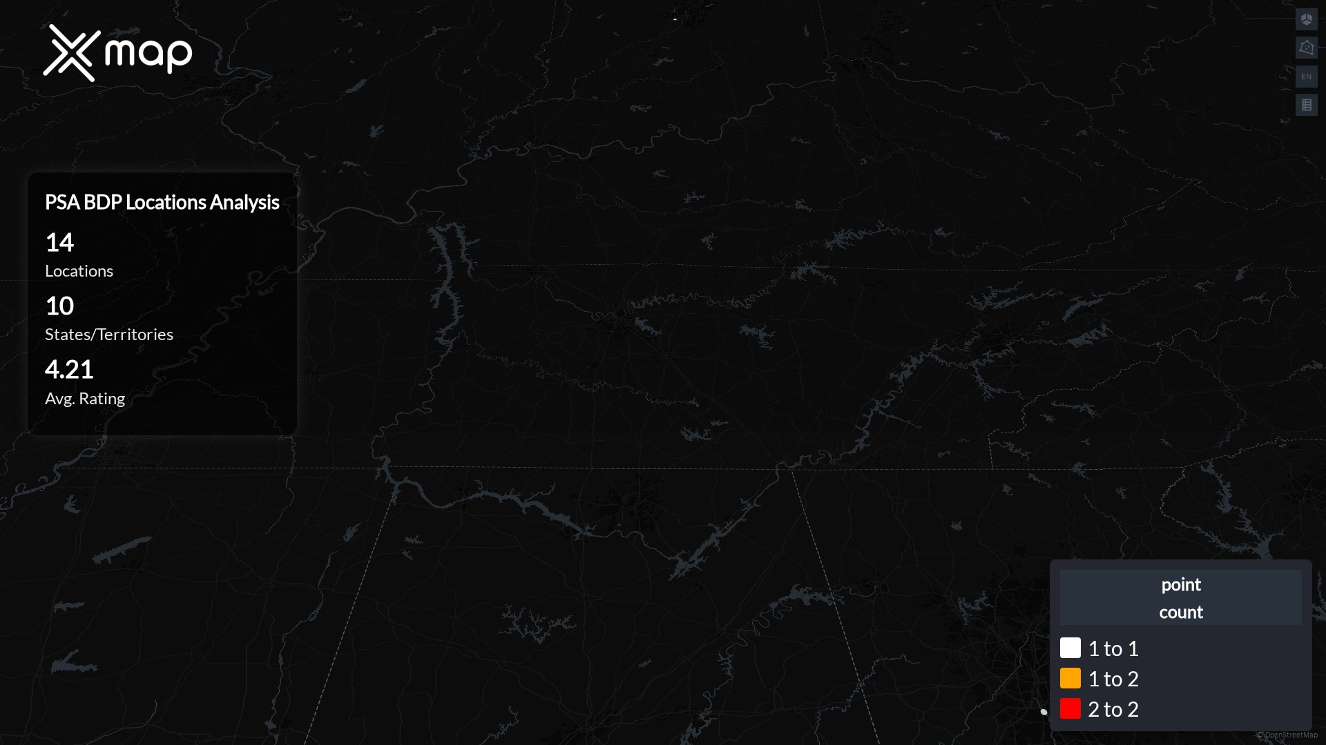 PSA BDP POI data enables clear measurement of footprint and demand. Analysts can rank states and cities by location count, compare coverage on a per-capita basis, and use traffic scores and review volumes to spot high-performing markets and under-served pockets. The result is an objective view of saturation, growth opportunities, and performance outliers.