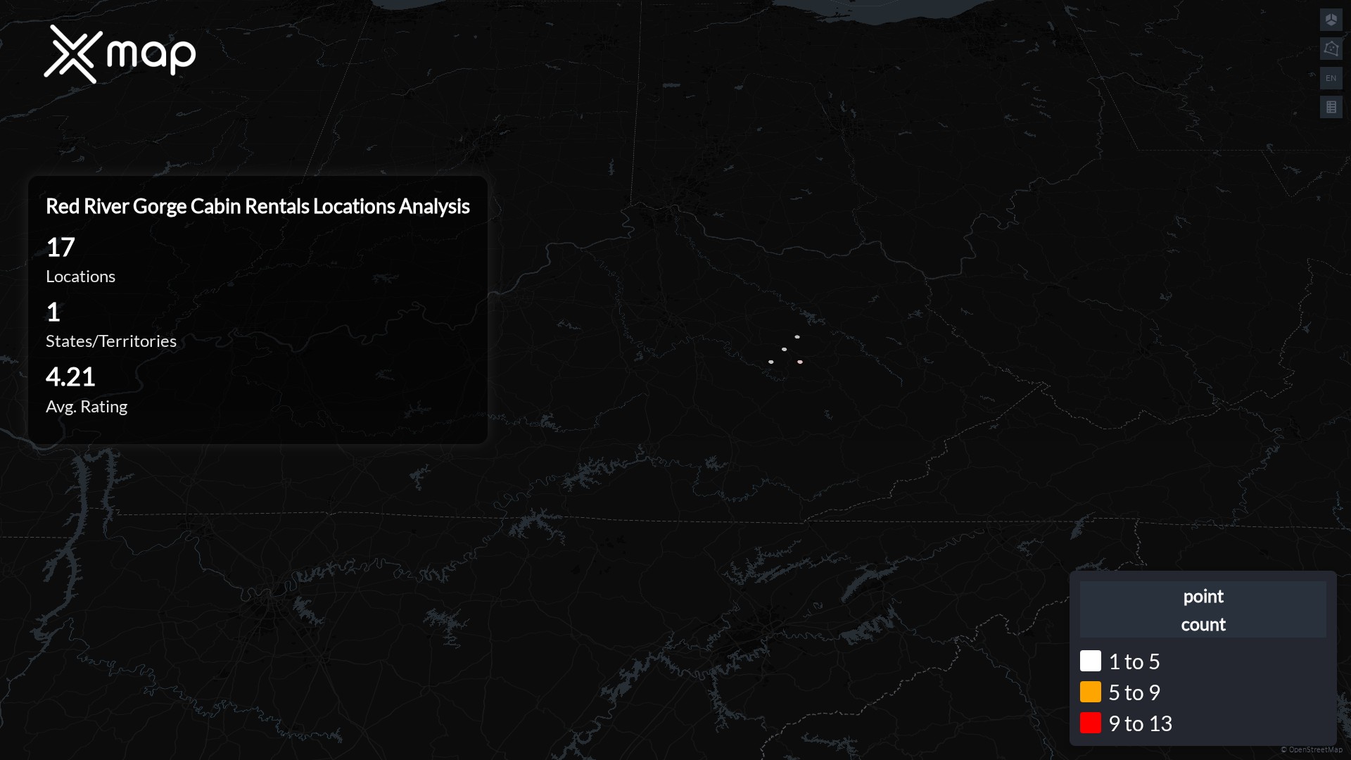 Red River Gorge Cabin Rentals has 17 locations across the United States of America. The key variables shows the most infleuntial aspects for Red River Gorge Cabin Rentals locations nationwide. This provides a closer look of how Red River Gorge Cabin Rentals is operating from different prespectives.