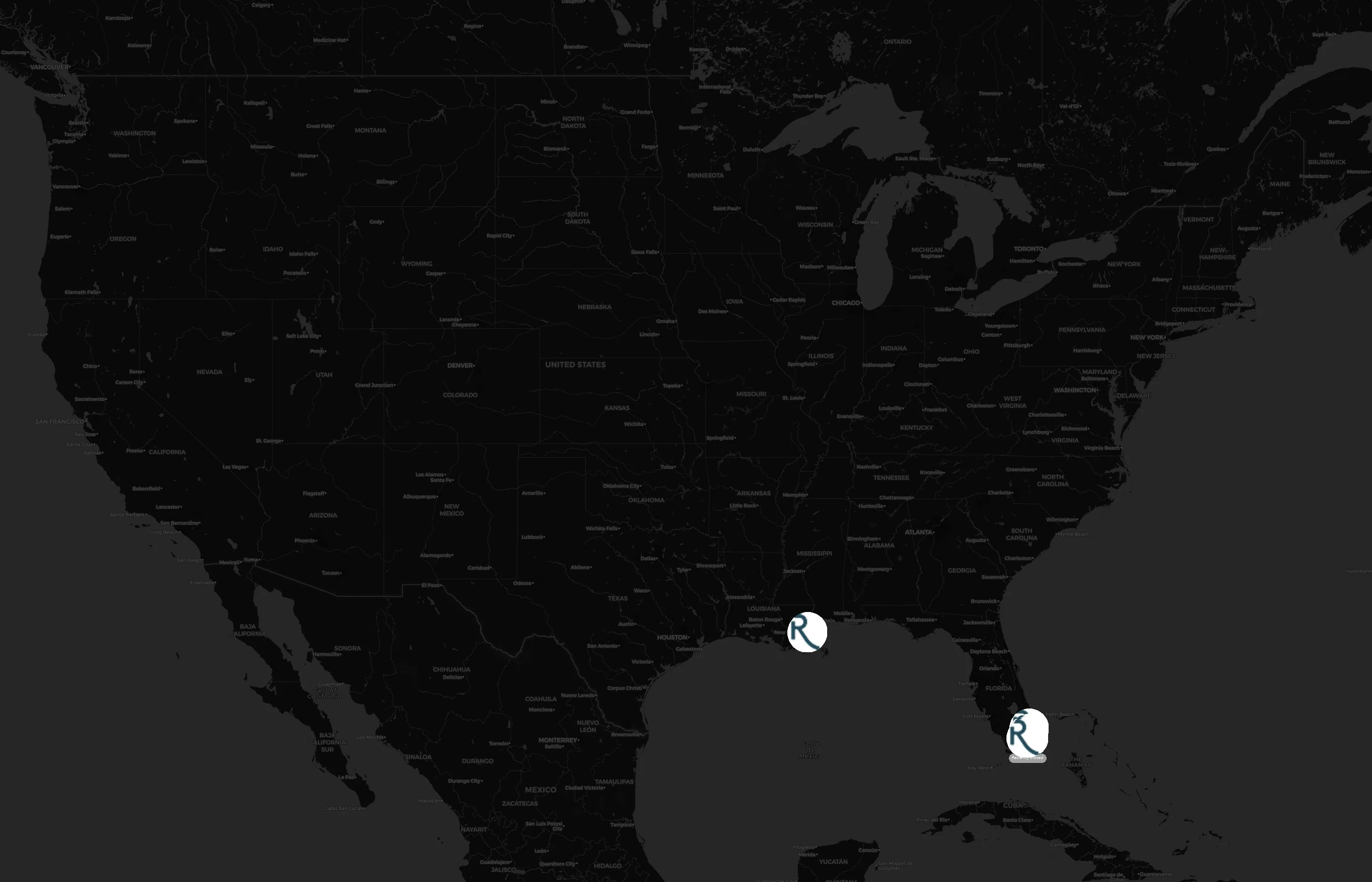 Roami operates 19 United States of America locations across 2 states. Largest clusters are in Florida and Louisiana; the top 10 states contain 94.7% of sites. Coverage is thinner in Florida and Louisiana.