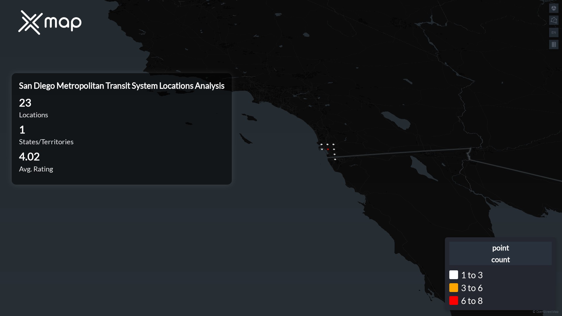 San Diego Metropolitan Transit System has 23 locations across the United States of America. The key variables shows the most infleuntial aspects for San Diego Metropolitan Transit System locations nationwide. This provides a closer look of how San Diego Metropolitan Transit System is operating from different prespectives.