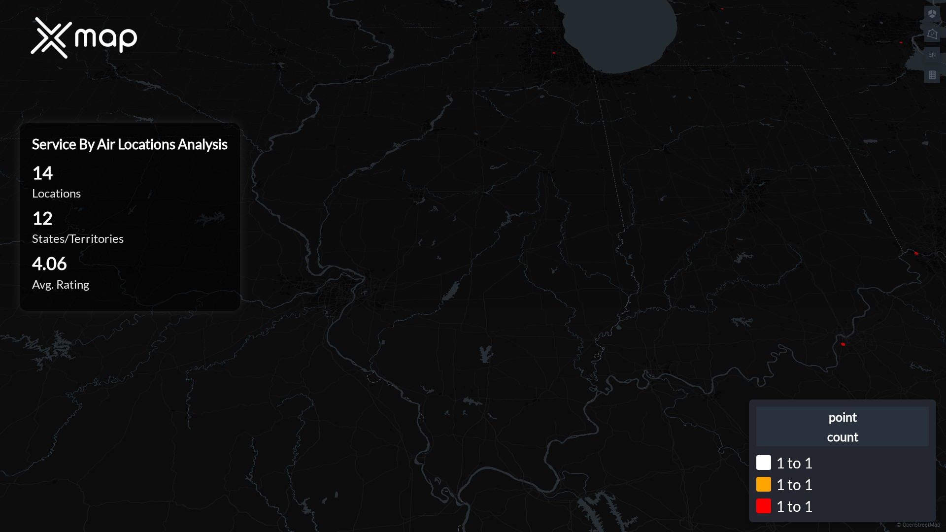 Service By Air POI data enables clear measurement of footprint and demand. Analysts can rank states and cities by location count, compare coverage on a per-capita basis, and use traffic scores and review volumes to spot high-performing markets and under-served pockets. The result is an objective view of saturation, growth opportunities, and performance outliers.