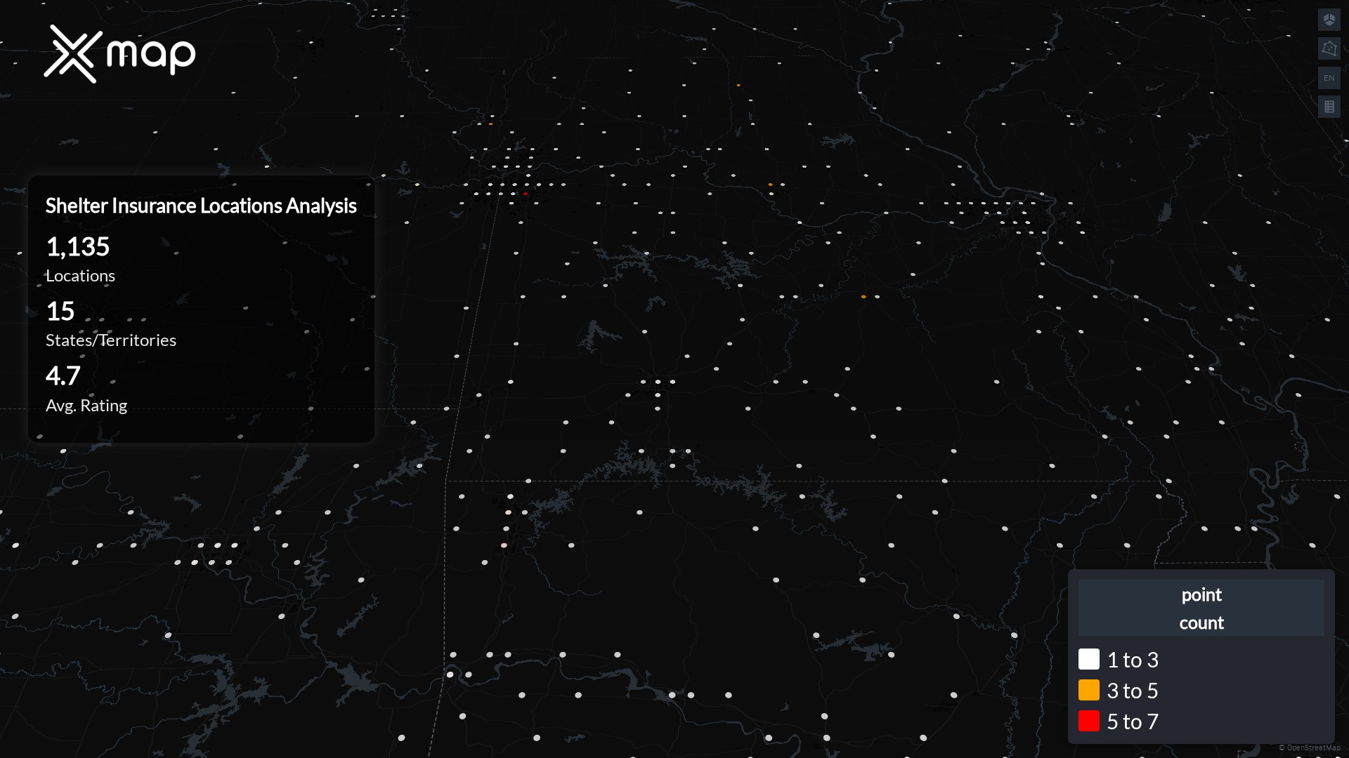 Shelter Insurance has 1135 locations across the United States of America. The key variables shows the most infleuntial aspects for Shelter Insurance locations nationwide. This provides a closer look of how Shelter Insurance is operating from different prespectives.