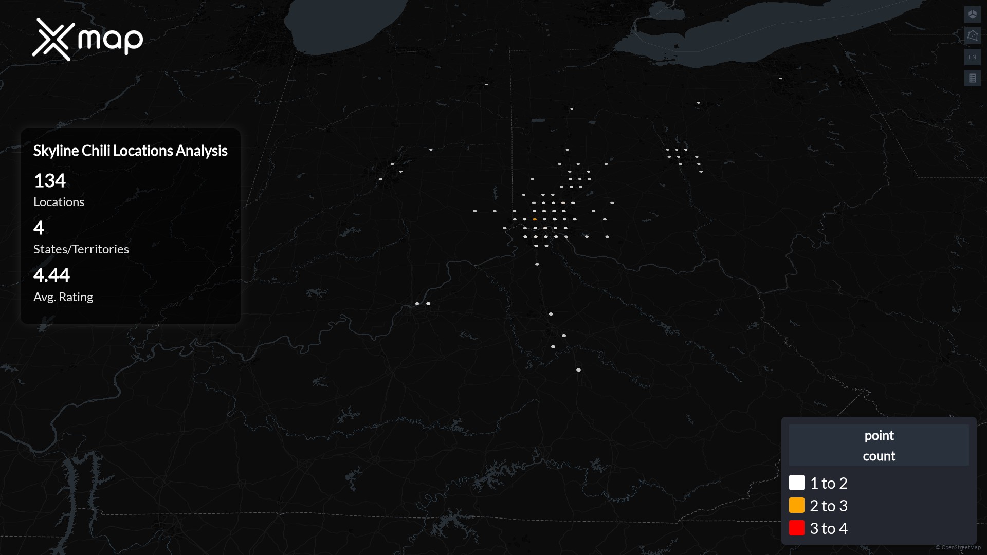 Skyline Chili has 134 locations across the United States of America. The key variables shows the most infleuntial aspects for Skyline Chili locations nationwide. This provides a closer look of how Skyline Chili is operating from different prespectives.