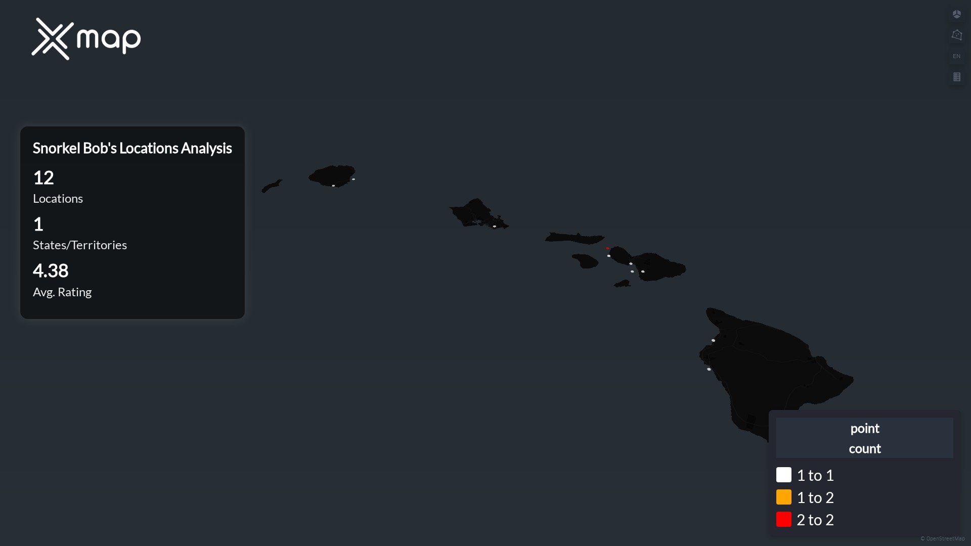 Snorkel Bob's has 12 locations in Hawaii, all of which are currently open, resulting in a 100% open rate. There are no closed locations for the brand in the state.