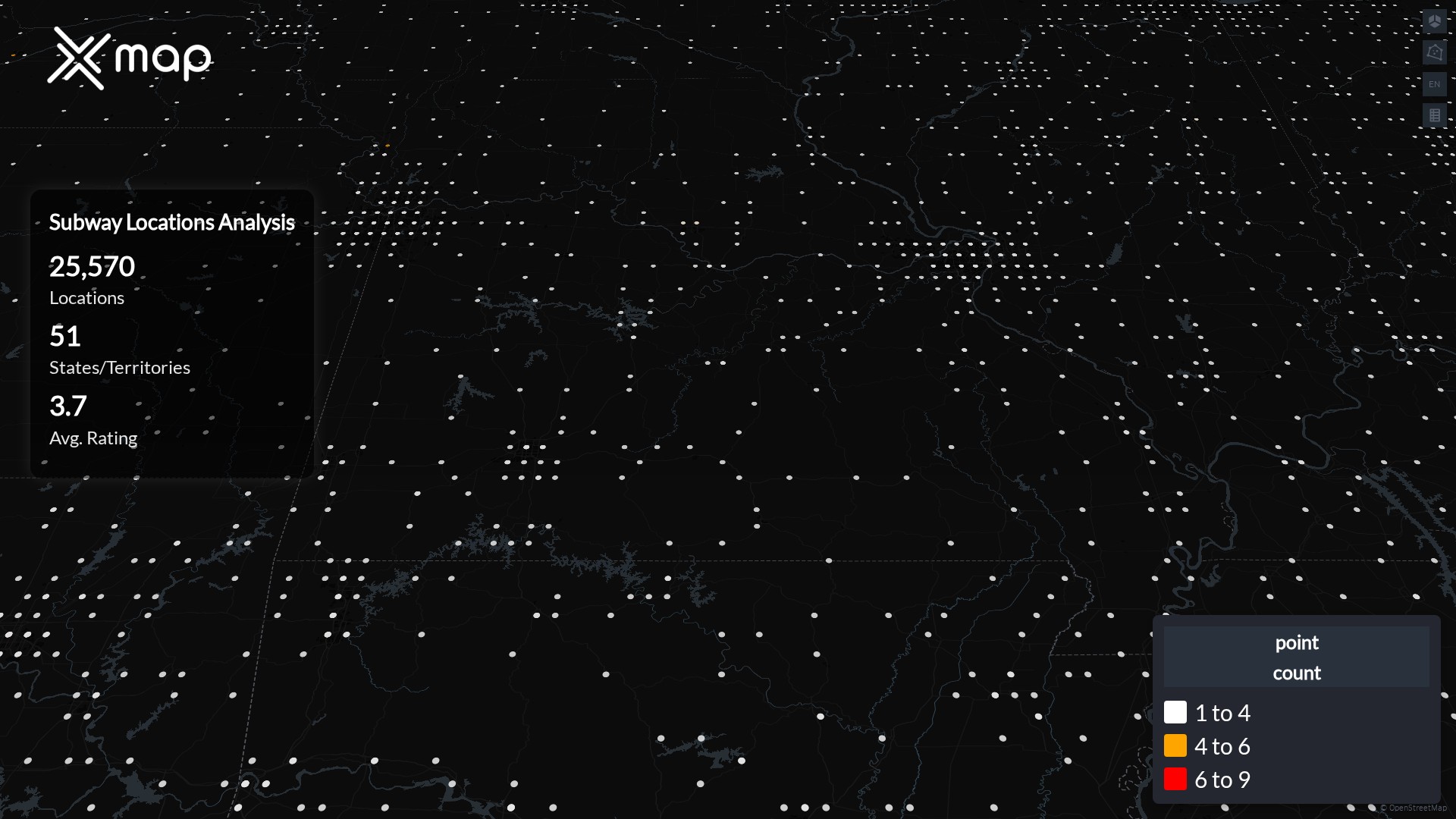 Subway has 25570 locations across the United States of America. The key variables shows the most infleuntial aspects for Subway locations nationwide. This provides a closer look of how Subway is operating from different prespectives.