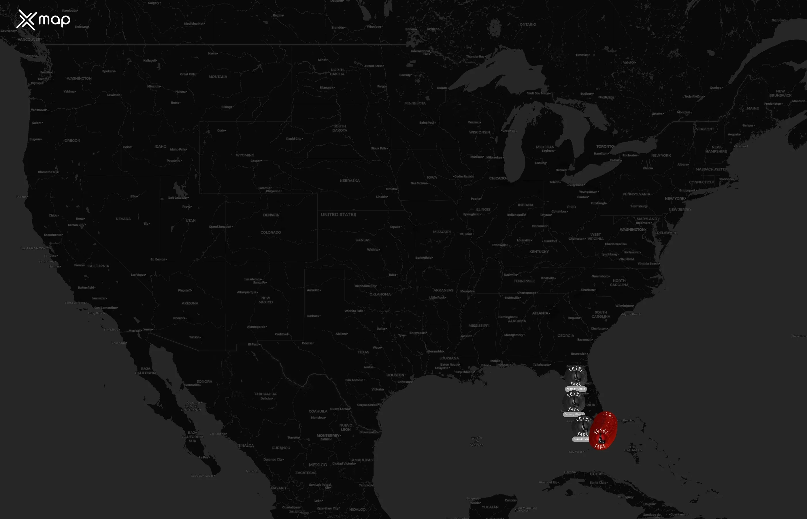 Locations concentrate around major metros such as Miami-Dade, Broward, Palm Beach, Alachua, and Hillsborough. The top 10 cities account for 100.0% of U.S. sites.